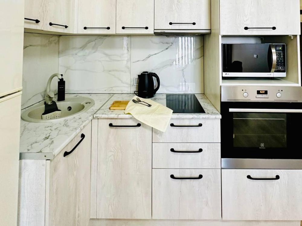 Аренда квартиры посуточно в центре Артёма Удобства квартиры: +1 двуспальная кровать; +диван; +обеденный стол/рабочее место; +шкаф; +постельное белье и полотенца; +кондиционер; +кухня со всем необходимым для приготовления пищи; +беспроводной интернет и телевизор с плоским экраном; +стиральная машина; +шампунь, т.бумага, жидкое мыло, ср.для мытья посуды; +фен; +утюг и гладильная доска; +бесплатная уборка и смена белья раз в 5-7 дней Удобное расположение района: - расстояние до моря Бухта" Муравьиная " "Амбавозы" 20 минут от адреса. - бухта "Шамора" 20мин. от адреса - в 5 минутах "Ледовая Арена " ,ТЦ " Авиатор", KFC,красивый парк, Рестораны , станция электрички и автовокзал - 12 мин. езды до Аэропорт(КНЕВИЧИ) Условия заселения: >заселение круглосуточно >заселение с 14-00 >выезд до 12, в некоторых случая готовы обсуждать индивидуальные условия выезда и въезда, эти пожелания нужно уточнять при подтверждения бронирования >бронирование доступно для лиц старше 21 лет, при заселении необходим паспорт для договора. Оплата: > Взимается страховой депозит 3000 руб., который возвращается после 16.00, при выезде, если все условия договора соблюдены. Запрещено: - курить (штраф в размере залогового депозита) - проживать с животными (штраф в размере залогового депозита) - проводить вечеринки и нарушать закон о тишине Дополнительно: +предоставляем пакет отчетных документы для командированных и оплату по счету; +удалённое заселение; +дополнительные спальные места предоставляются по запросу. Обратите внимание! Указанная стоимость проживания действует для раннего бронирования и может измениться в период повышенного спроса и праздничные дни. Мебель Двуспальная кровать, Диван, Кухонный гарнитур, Обеденный стол, Шкаф Бытовая техника Вытяжка, Кондиционер, Микроволновая печь, Плита,, Стиральная машина, Титан, Телевизор, Холодильник, Чайник, Стеклокерамическая плита Инфраструктура и коммуникации Домофон, Парковка, Лифт, Консьерж, Интернет Услуги Уборка квартиры, Смена белья, Отчетные документы