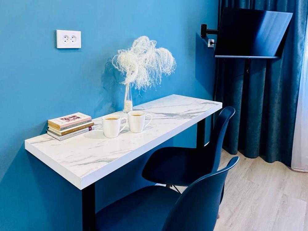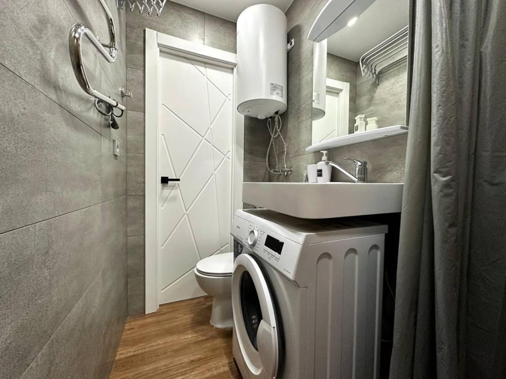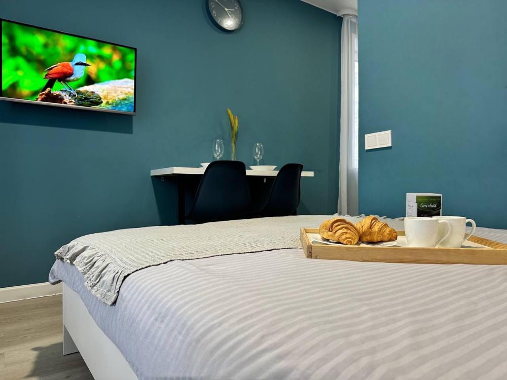 Однокомнатные апартаменты для 2 гостей. Спальные места: двуспальная кровать. К услугам гостей кондиционер; беспроводной интернет и телевизор с плоским экраном; стиральная машина; фен; утюг и гладильная доска. Кухня со всем необходимым для приготовления пищи. Предоставляется стиральный порошок, шампунь, т.бумага, жидкое мыло, ср.для мытья посуды.