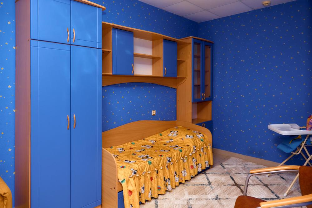 Площадь номера составляет 60м.кв. В номере: 2-х спальная кровать, детский спальный гарнитур с кроватью, кресло, телевизор, камин, холодильник, телефон, сейф, письменный стол, журнальный стол, шкаф-купе, халат, тапочки, чайник, чайный набор, мини-бар. Ванная комната: Душевая кабина, унитаз, фен, косметика Премиум класса,набор полотенец.