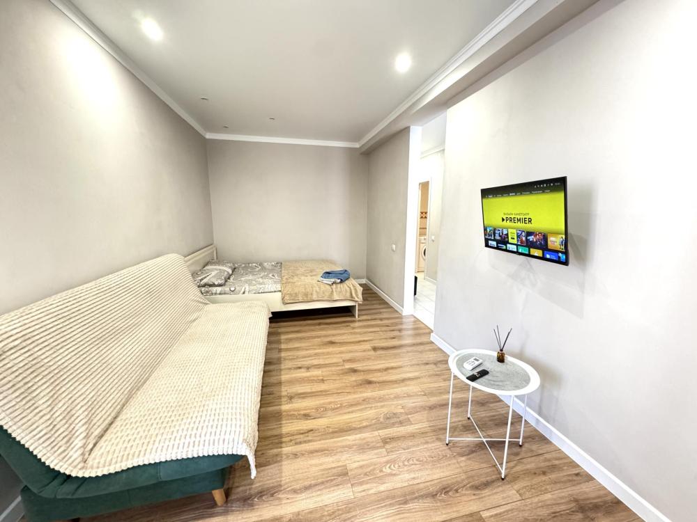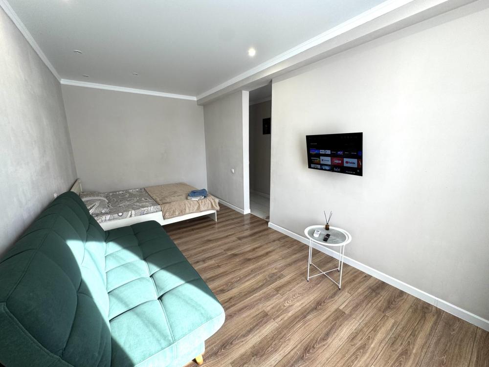 Уютные однокомнатные апартаменты, оборудованные всем необходимым для комфортного проживания. В апартаментах: двуспальная кровать, раскладной двуспальный диван, кухня, оборудованная всей необходимой посудой и техникой для приготовления и приема пищи, Wi-Fi, санузел. Гостям предоставляется постельное белье и полотенца.