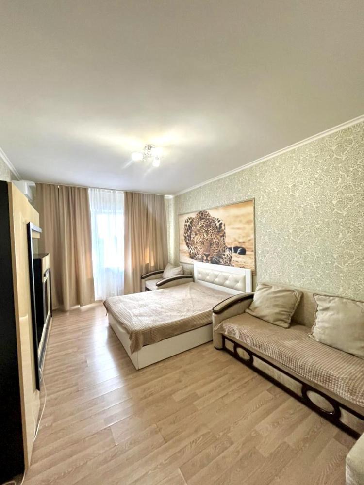 Уютные однокомнатные апартаменты, оборудованные всем необходимым для комфортного проживания. В апартаментах: двуспальная кровать, 2 дивана, кухня, оборудованная всей необходимой посудой и техникой для приготовления и приема пищи, Wi-Fi, санузел. Гостям предоставляется постельное белье и полотенца.