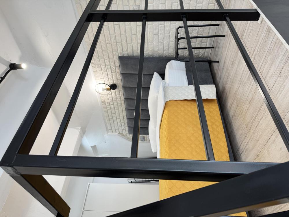 Двухуровневые апартаменты повышенной комфортности. Первый этаж - просторная гостиная - обеденный стол, диван, смарт TV, зона кухни, ванная комната (ванна, душ). Второй этаж - двуспальная кровать (200•200), туалетная комната. Также в номере - холодильник, посудомоечная и стиральная машина с сушилкой, фильтр для воды, кофемашина, кондиционер, wi-fi, автоматические шторы. Напольное покрытие - паркетная доска.