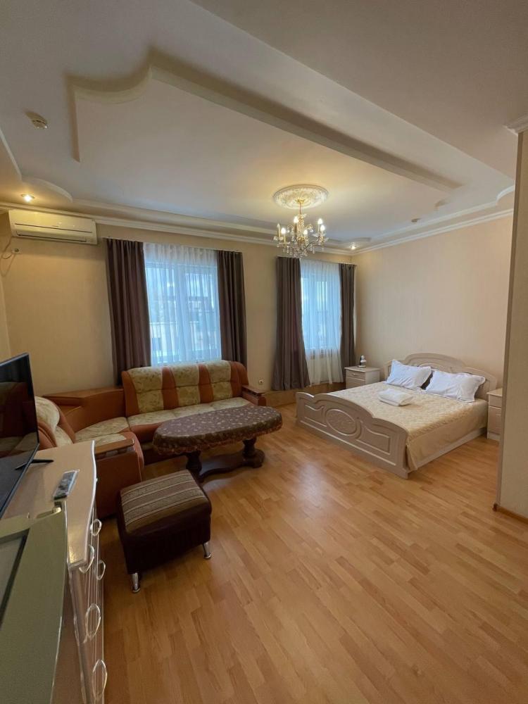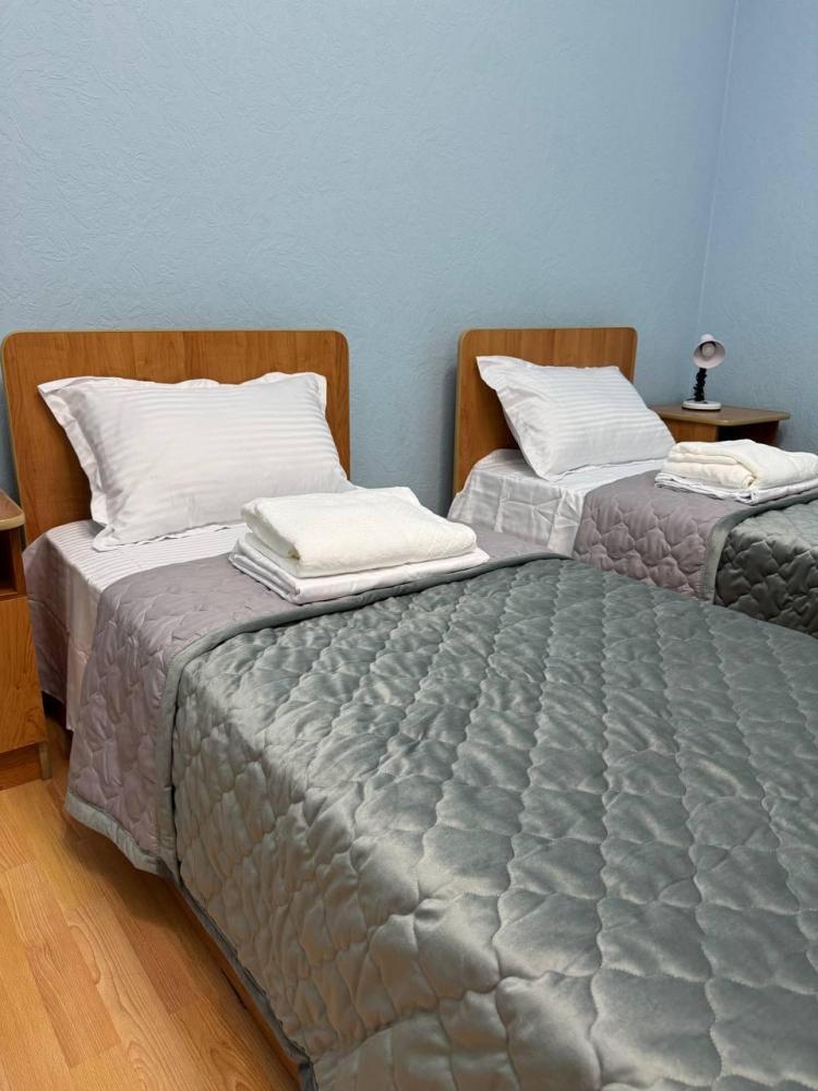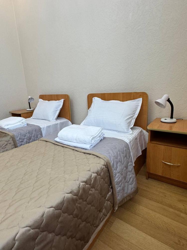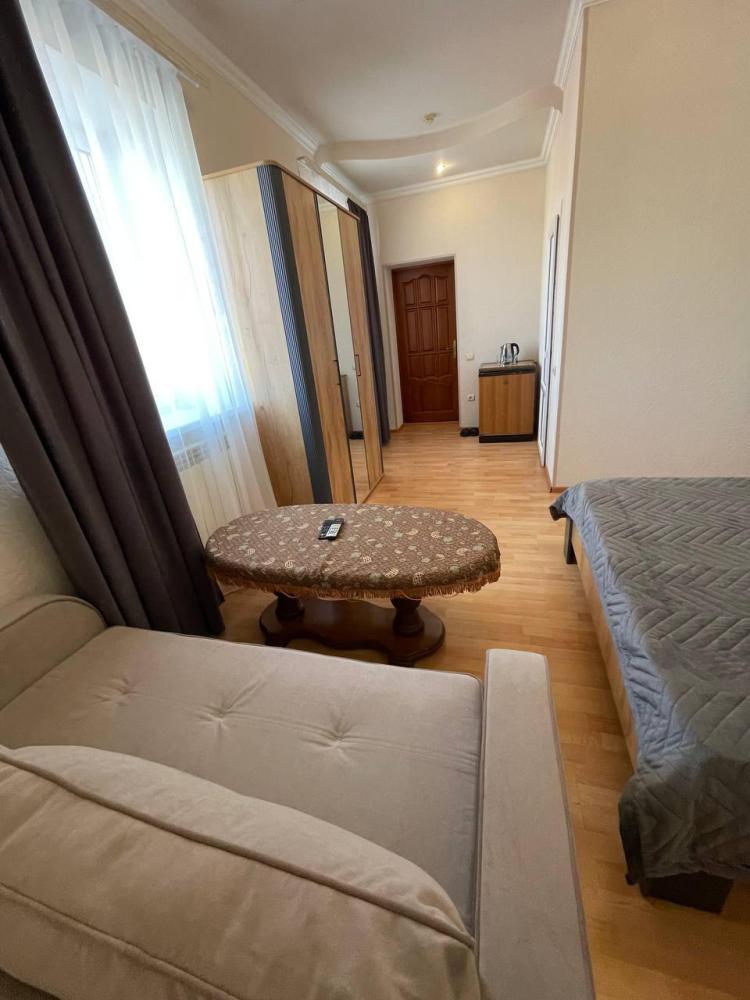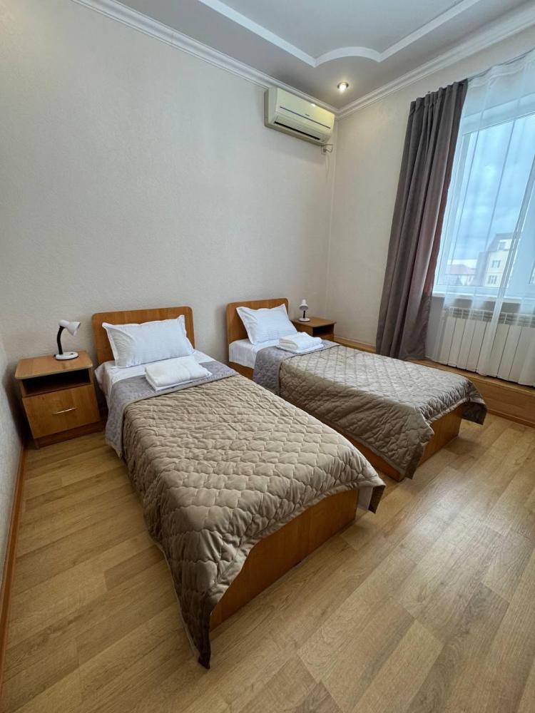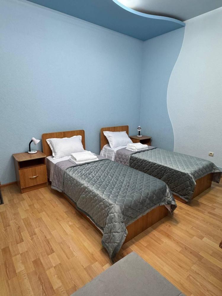 Номер с 2 односпальными кроватями,а так же мягкой зоной: диван, два кресла, оснащен кондиционером, телевизором с плоским экраном и холодильником.