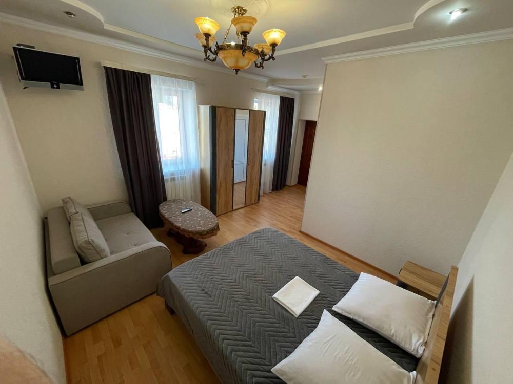 Номер оформлен в классическом стилем и оснащен кондиционером, телевизором с плоским экраном и холодильником.В номере 1 двуспальная кровать и диван.