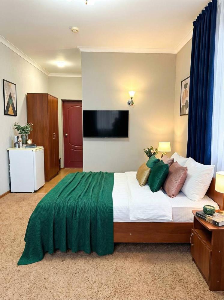 Просторный двухместный номер с двумя раздельными кроватями или одной большой кроватью, с возможностью поставить доп место. В номере есть все самое необходимое для комфортного проживания: вместительный шкаф и прикроватная тумба, кондиционер, телевизор, холодильник, ТВ, чайник. Ванная комната оснащена душевой кабиной, феном. Каждому гостю выдается мягкое полотенце и гигиенический набор.