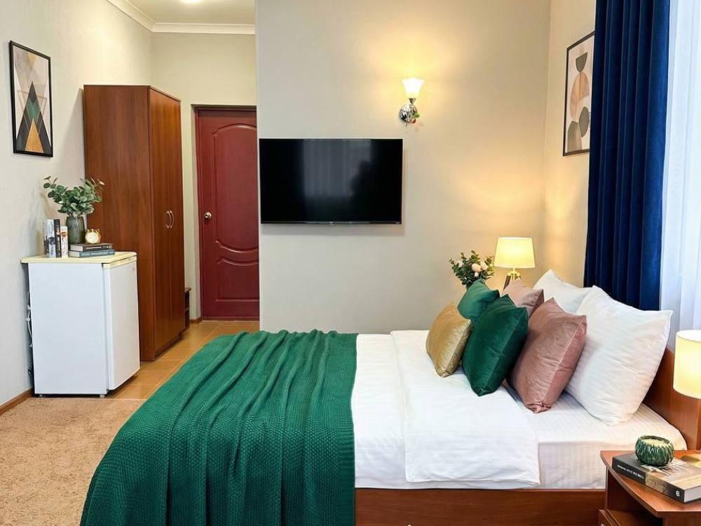 Удобный двухместный номер с двумя раздельными кроватями или одной большой кроватью. В номере есть все самое необходимое для комфортного проживания: вместительный шкаф и прикроватная тумба, кондиционер, телевизор, холодильник, ТВ, чайник. Ванная комната оснащена душевой кабиной, феном. Каждому гостю выдается мягкое полотенце и гигиенический набор.