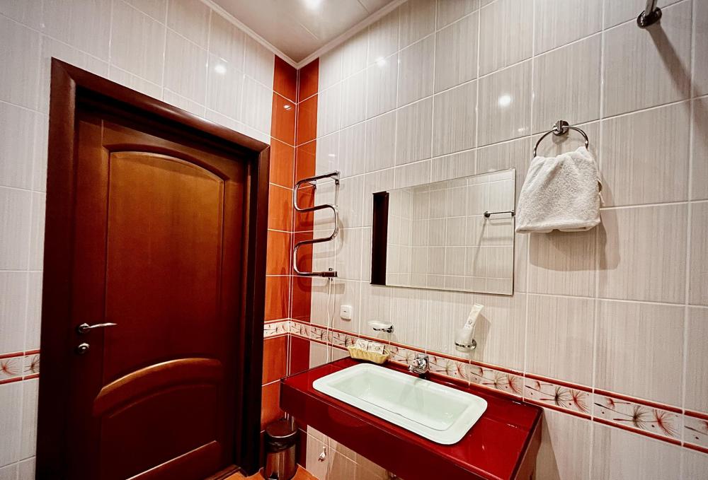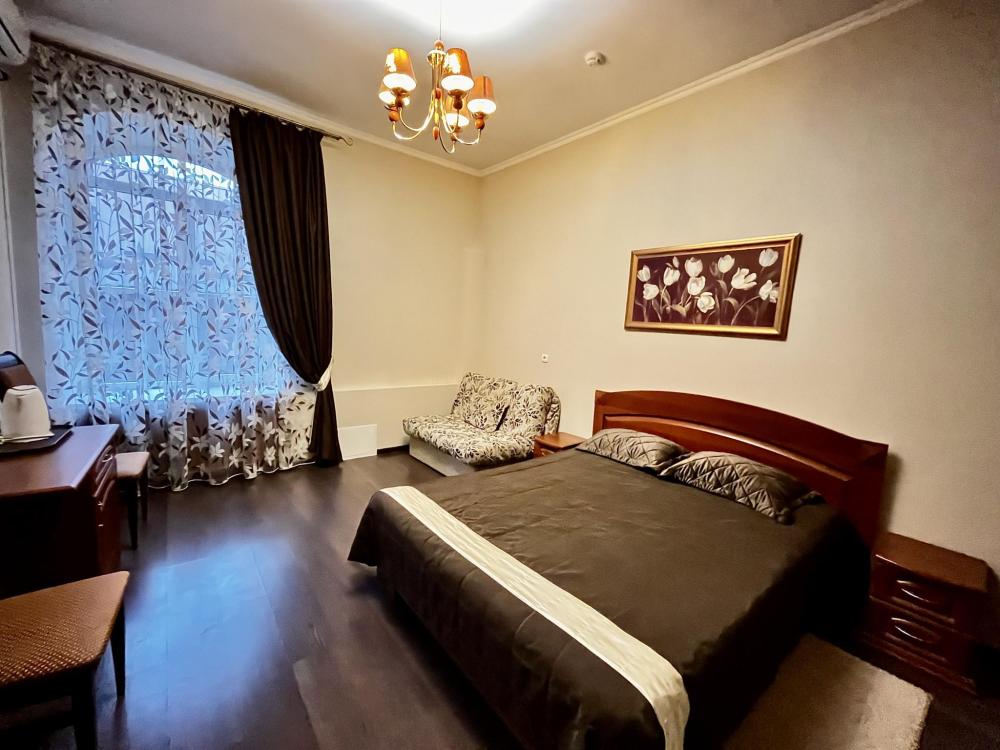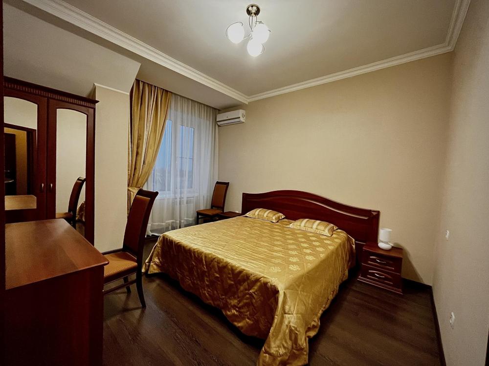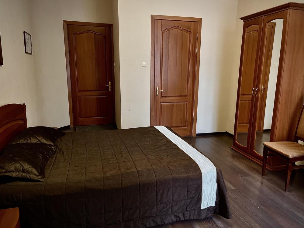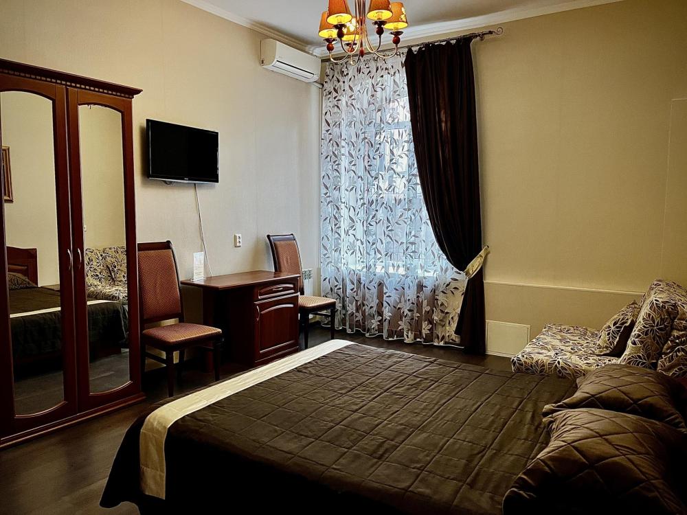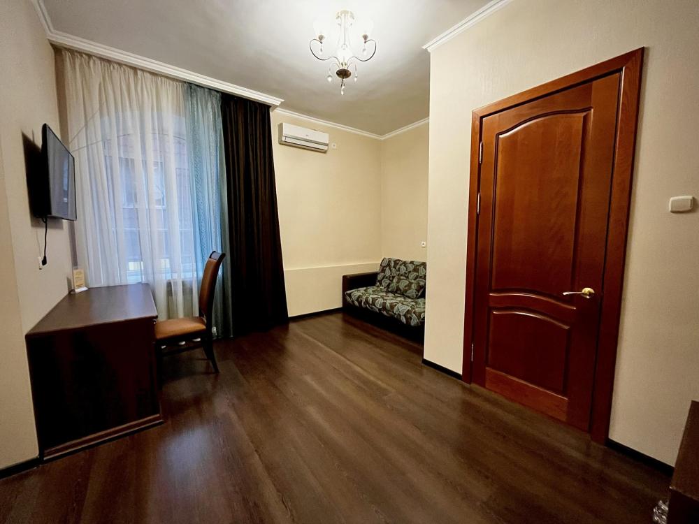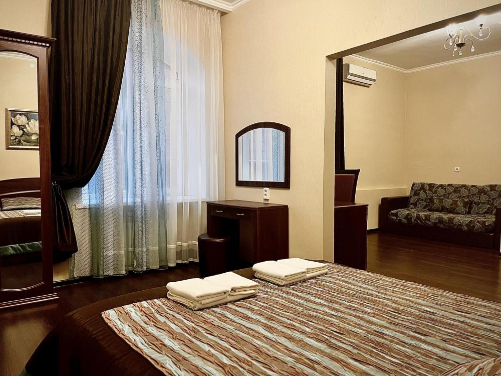 Четырехместный двухкомнатный номер делюкс общей площадью 30 кв.м. Оснащение номера: двухспальная кровать, диван, телевизор, кондиционер, мини-холодильник, чайник, рабочая зона, ванная комната с душем, набор полотенец, туалетно-гигиенические принадлежности.