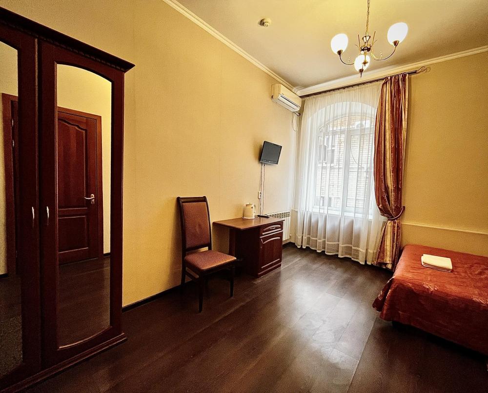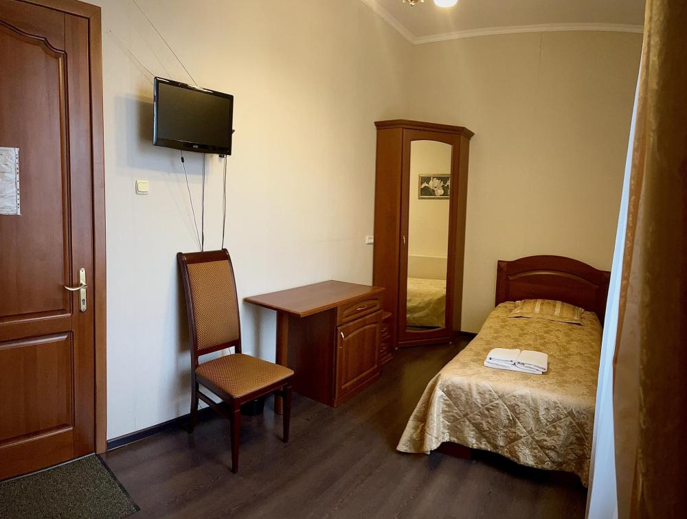Одноместный номер стандарт общей площадью 15 кв.м. Оснащение номера: односпальная кровать, телевизор, кондиционер, мини-холодильник, чайник, рабочая зона, ванная комната с душем, набор полотенец, туалетно-гигиенические принадлежности.