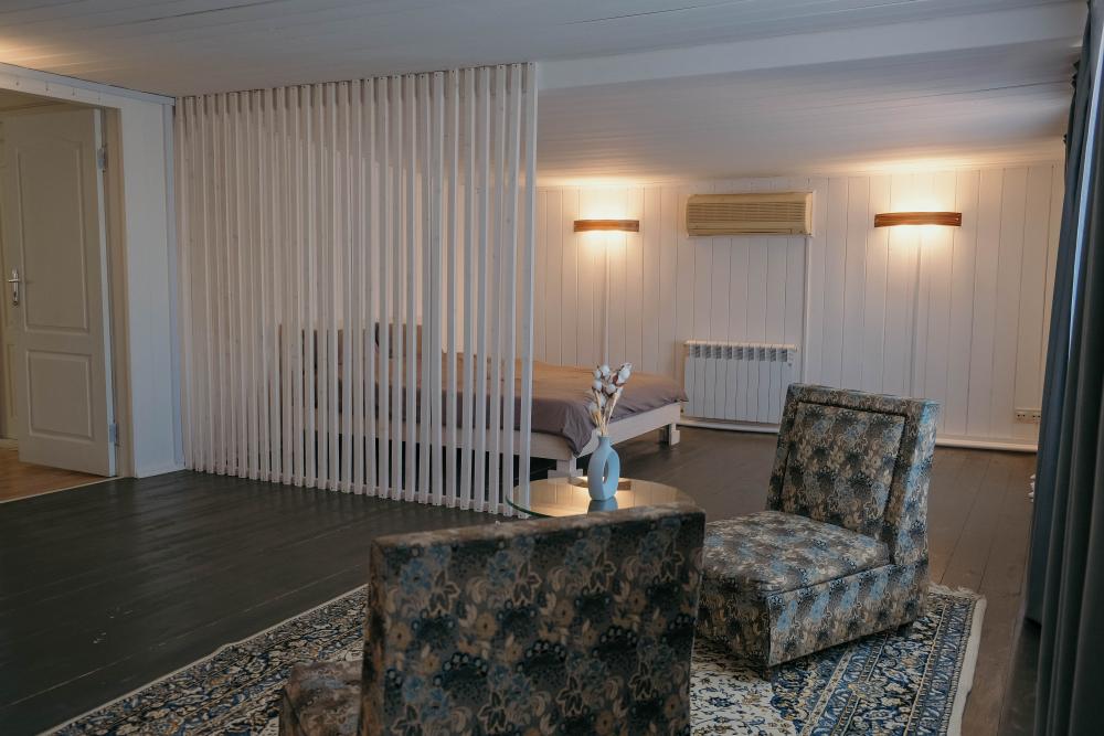 Просторный, уютный коттедж рассчитанный на 15 гостей. В коттедже имеется все необходимое для идеального отдыха. На первом этаже дома расположена сауна и веранда с панорамным видом на реку. Большая кухня-гостинная, с камином и полностью оборудованной кухней. Имеется обеденная зона, зона с настольным теннисом и массажным креслом, а так же настольные игры. На втором этаже коттеджа располагаются спальни, оборудованные шестью двуспальными кроватями и одной односпальной. Также гости могут расположиться на раскладном диване в гостиной.