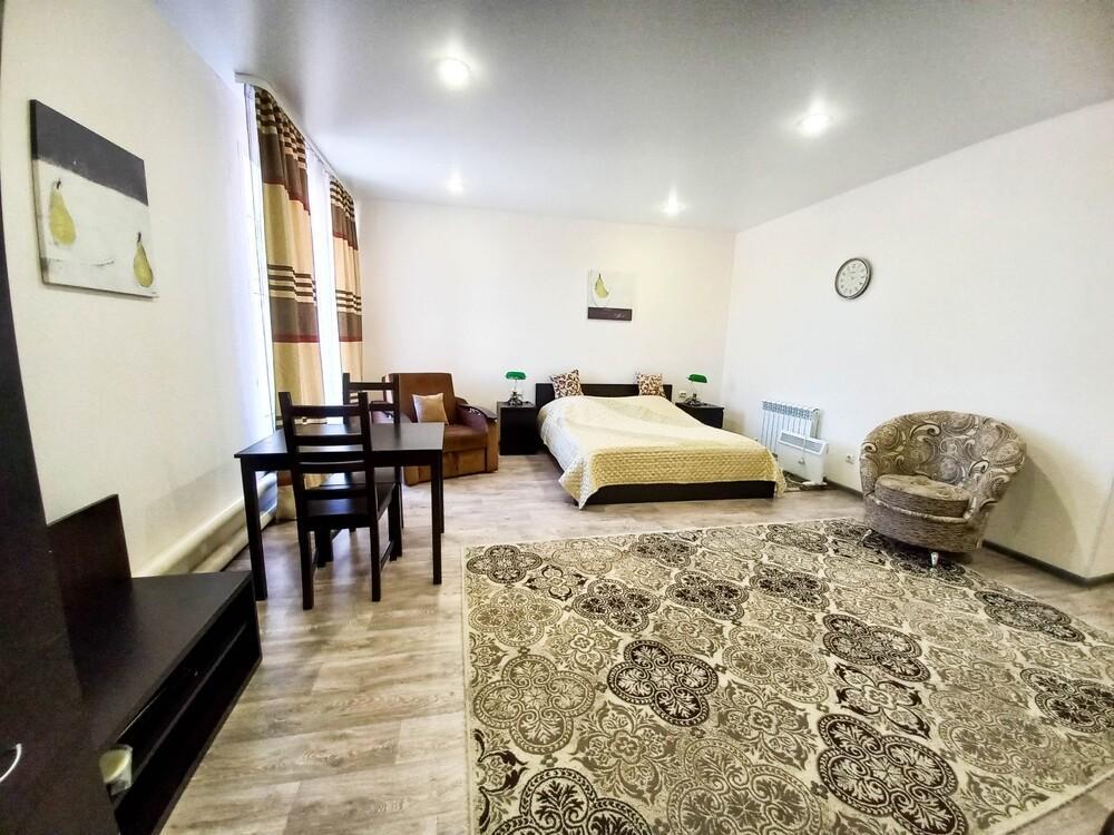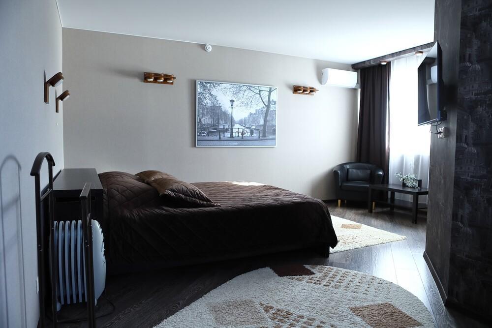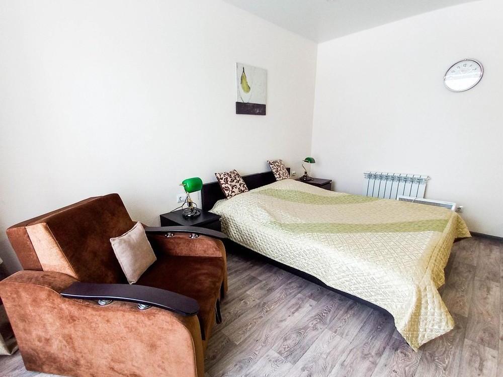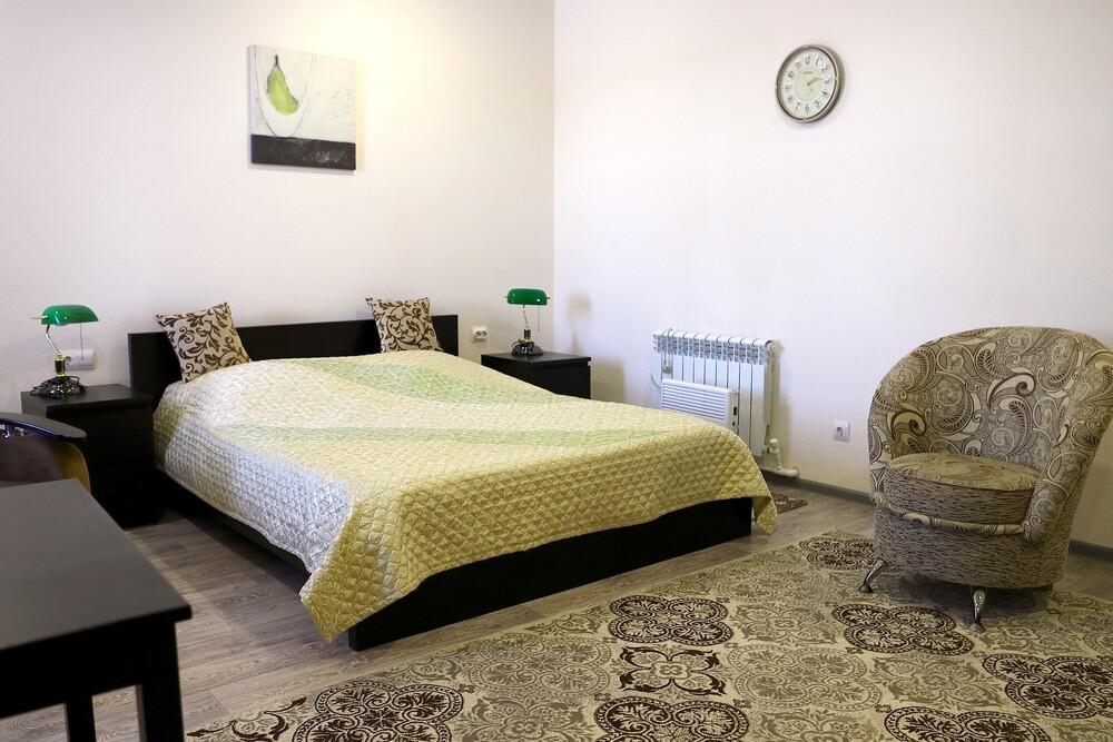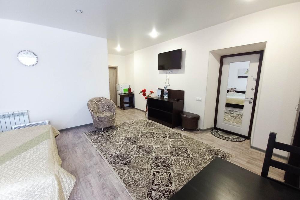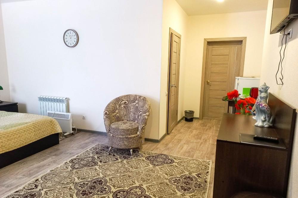 Двухместный номер стандарт общей площадью 35 кв.м. с двухспальной кроватью. Оснащение номера: двухспальная кровать, прикроватные тумбочки, телевизор, холодильник, чайник, ванная комната, набор полотенец, туалетно-гигиенические принадлежности.