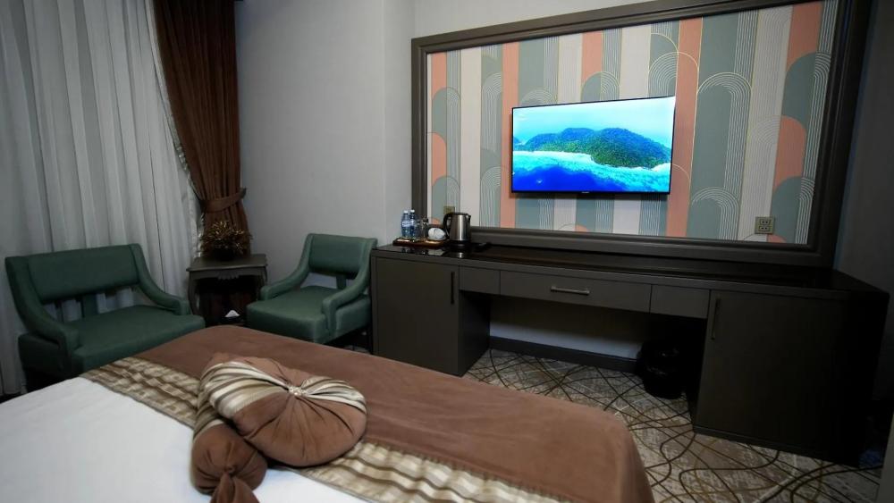 Трехместный номер с 1 двуспальной кроватью и 1 односпальной кроватью. Собственная ванная комната с душем укомплектована феном, тапочками, халатами и бесплатными туалетно-косметическими принадлежностями. В числе удобств этого просторного номера со звуконепроницаемыми стенами — кондиционер, мини-бар, принадлежности для чая/кофе и телевизор с плоским экраном и кабельными каналами.