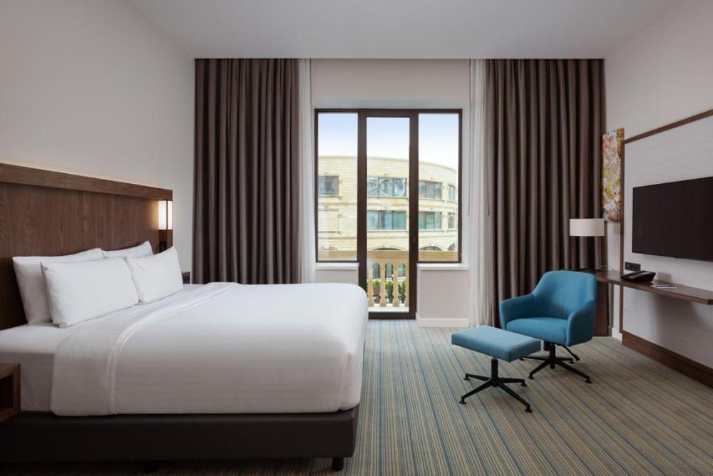 Улучшенный номер с видом на город, 1 кровать размера «king-size», мини-холодильник, беспроводной интернет (бесплатно), проводной интернет (бесплатно), кофеварка/чайник, телевизор, письменный стол, кондиционер.