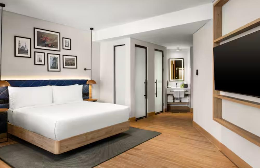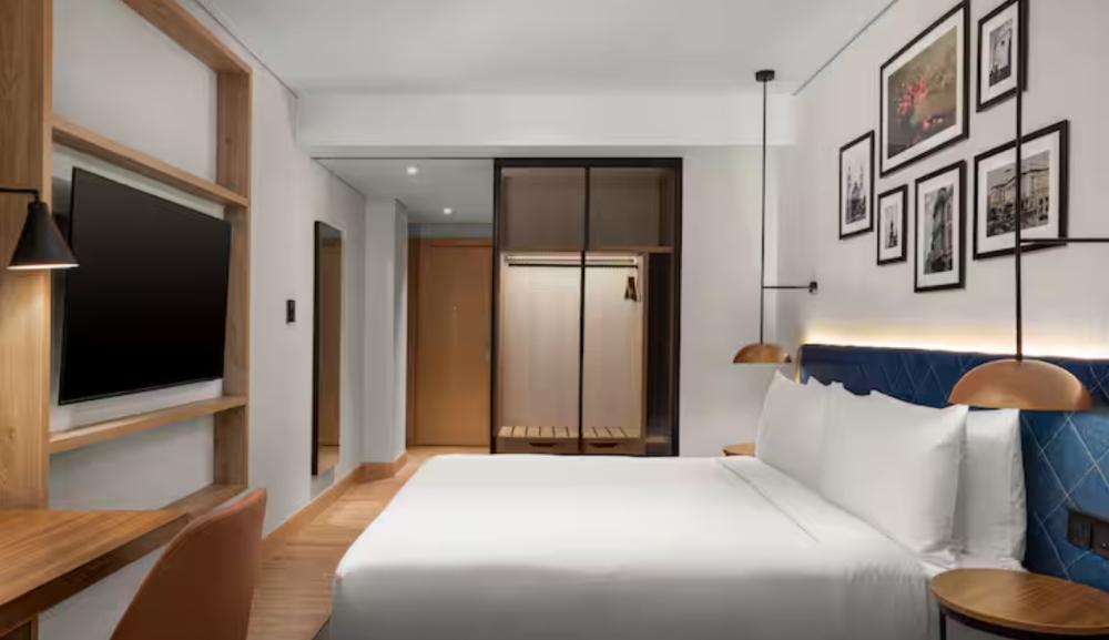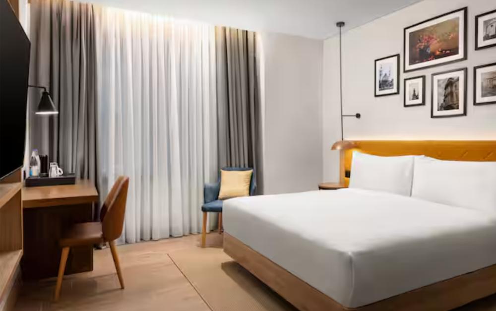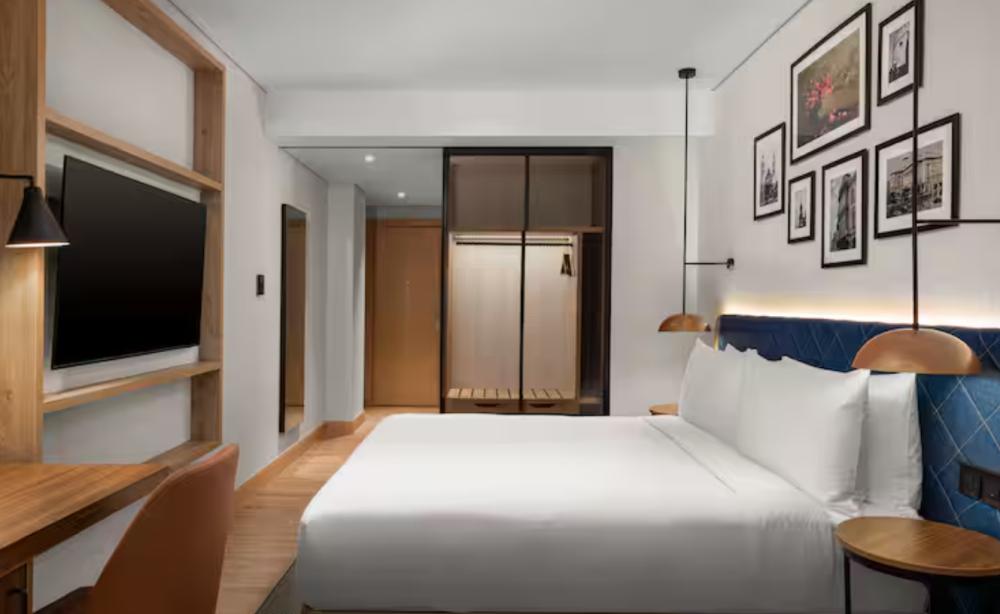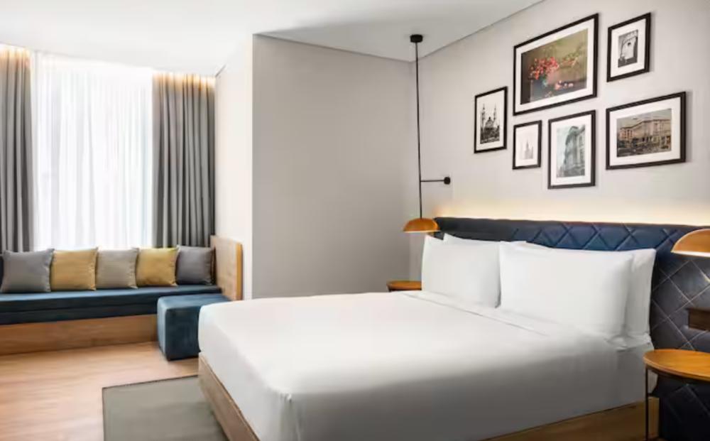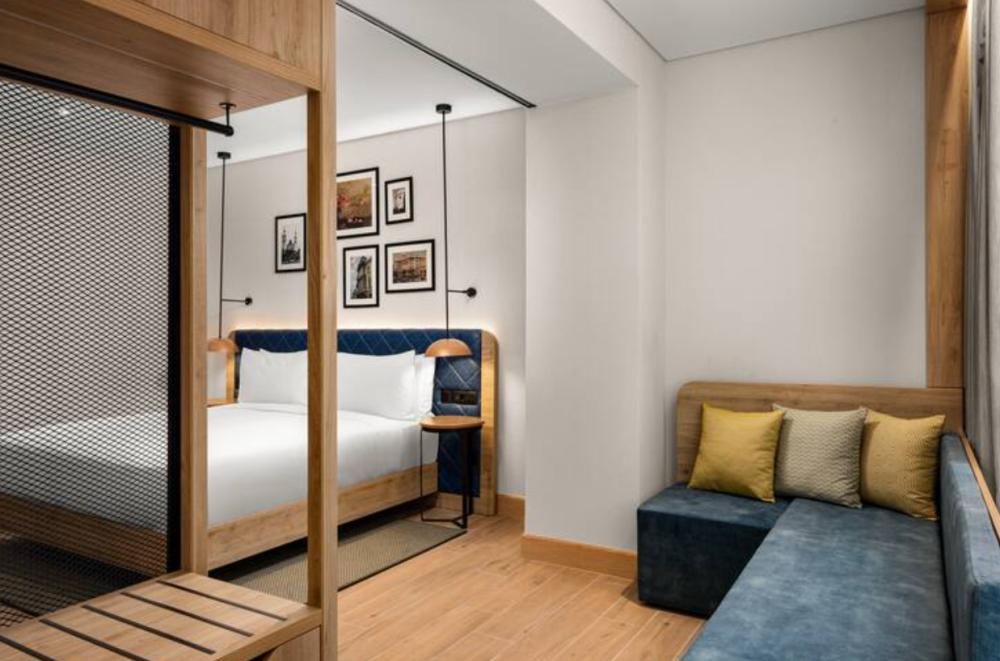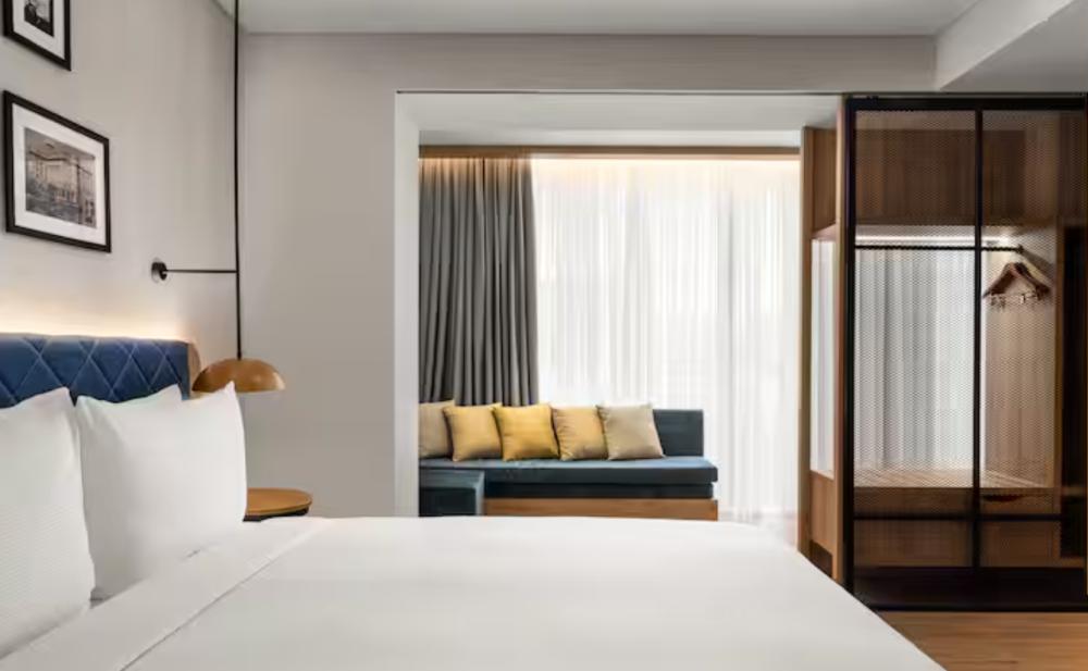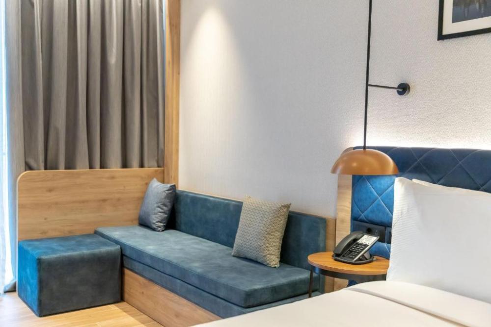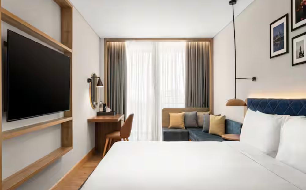Стандартный номер с двуспальной кроватью king size и диваном. В номере балкон, бесплатный WiFi, телевизор, диван, мини-холодильник, кондиционер, набор для приготовления чая и кофе, утюг с гладильной доской, шторы блэк-аут и рабочий стол. Из окна открывается вид на город. Гости могут воспользоваться услугой обслуживания в номерах.