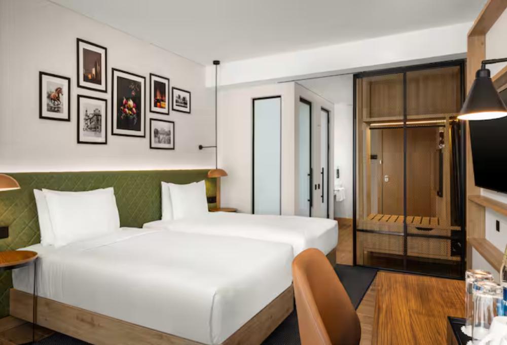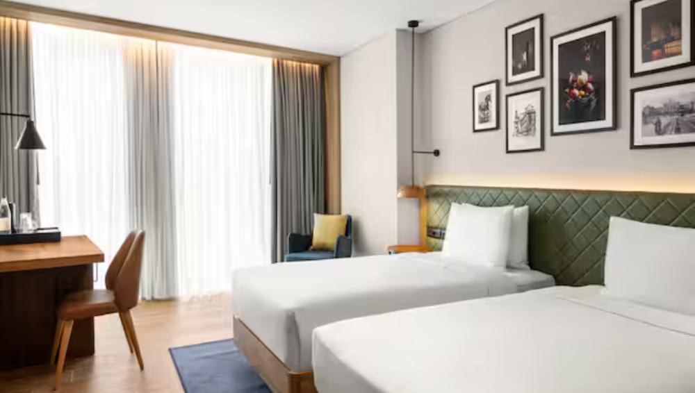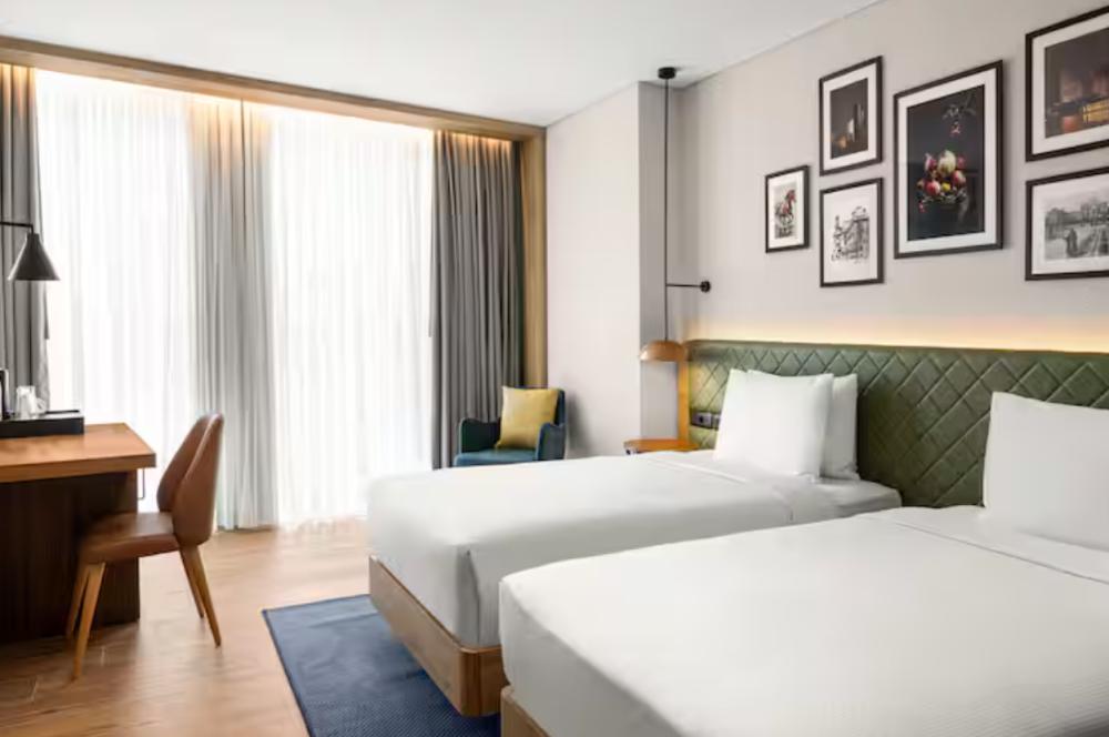 Стандартный номер с 2 односпальными кроватями. В номере бесплатный WiFi, телевизор, диван, мини-холодильник, кондиционер, набор для приготовления чая и кофе, утюг с гладильной доской и рабочий стол. В номере блэк-аут шторы и гипоаллергенные подушки. Из окна открывается вид на город. Гости могут воспользоваться услугой обслуживания в номерах.