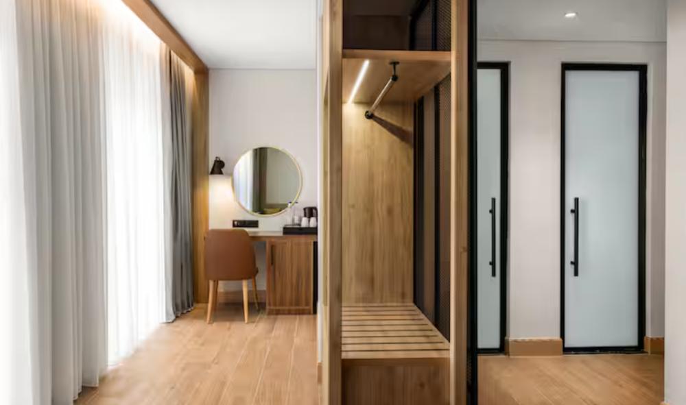 Номер делюкс с двуспальной кроватью king size и диваном. В номере бесплатный WiFi, телевизор, диван, мини-холодильник, кондиционер, набор для приготовления чая и кофе, утюг с гладильной доской и рабочий стол. Из окна открывается вид на город. Гости могут воспользоваться услугой обслуживания в номерах.