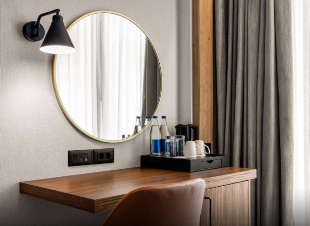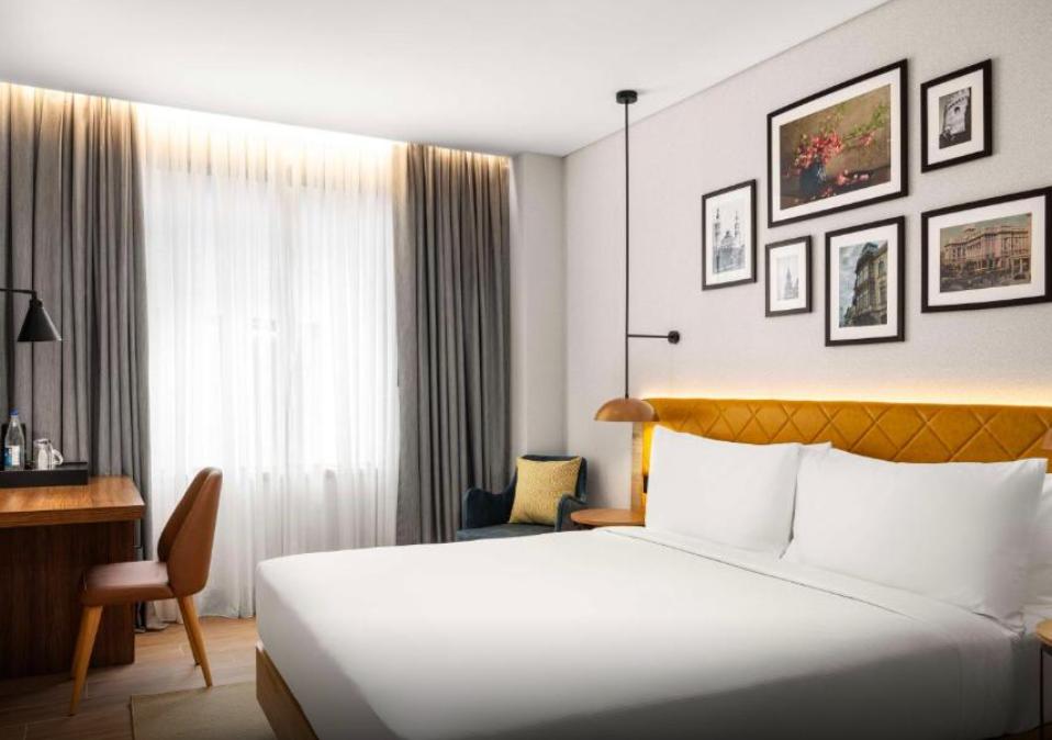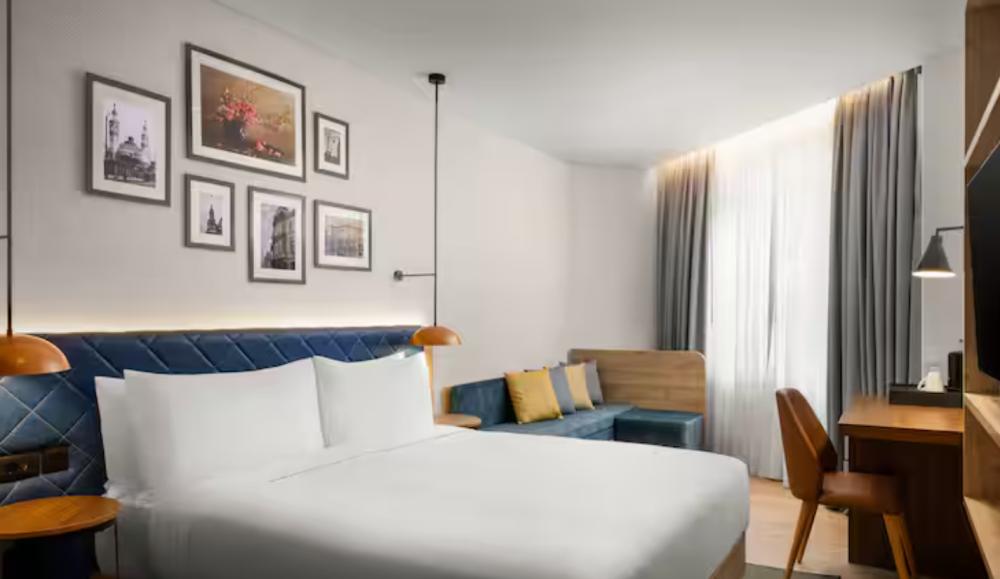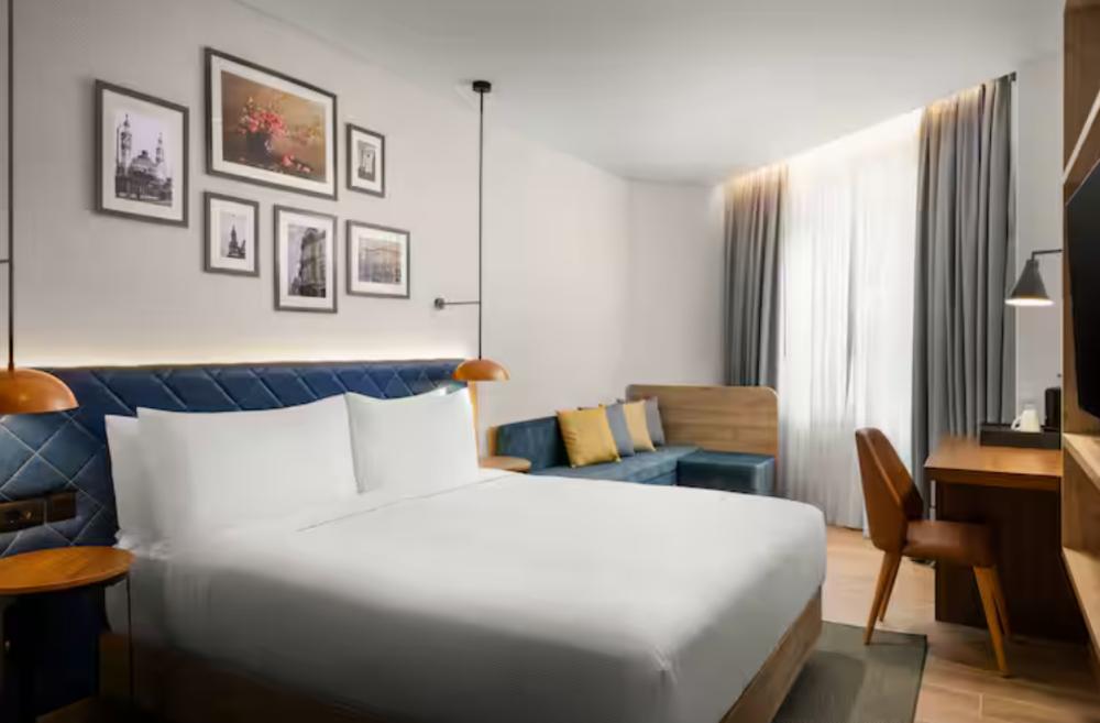 Стандартный номер с двуспальной кроватью king size и диваном. В номере бесплатный WiFi, телевизор, диван, мини-холодильник, кондиционер, набор для приготовления чая и кофе, утюг с гладильной доской и рабочий стол. Из окна открывается вид на город. Гости могут воспользоваться услугой обслуживания в номерах.