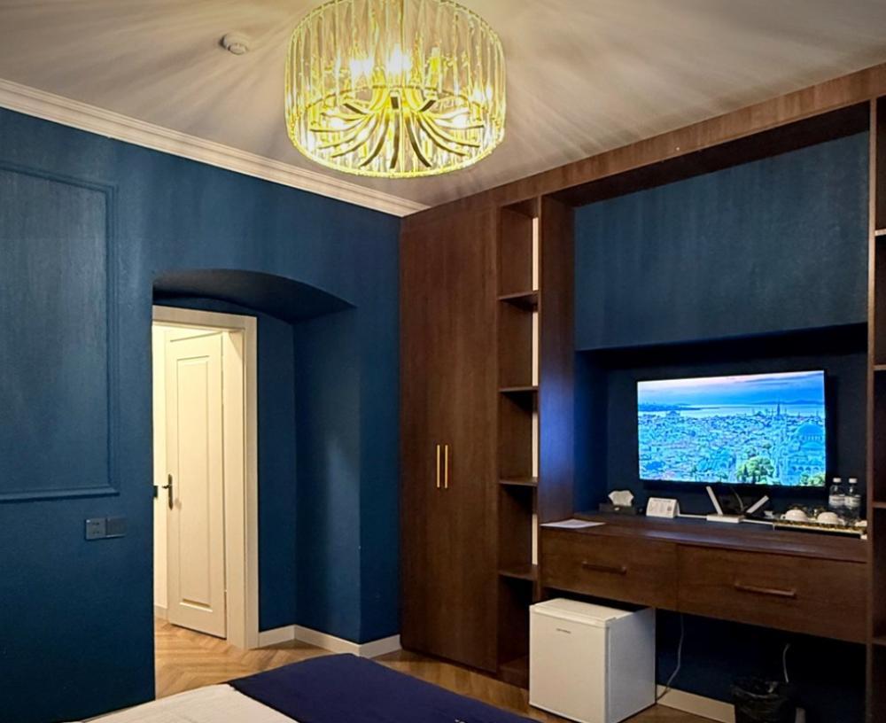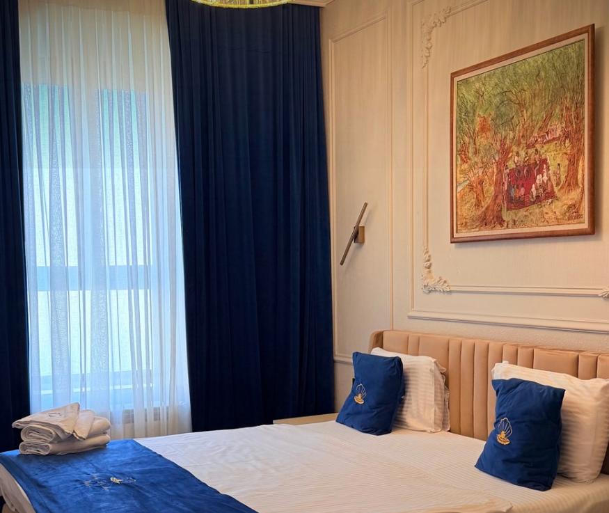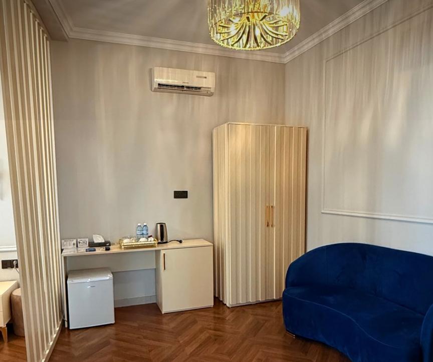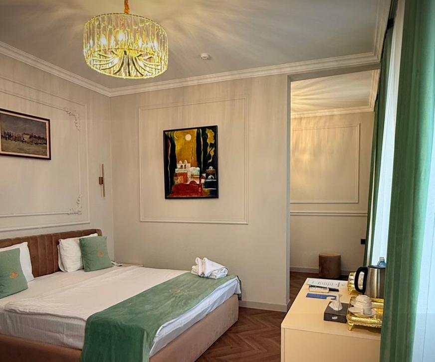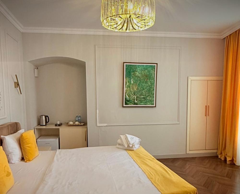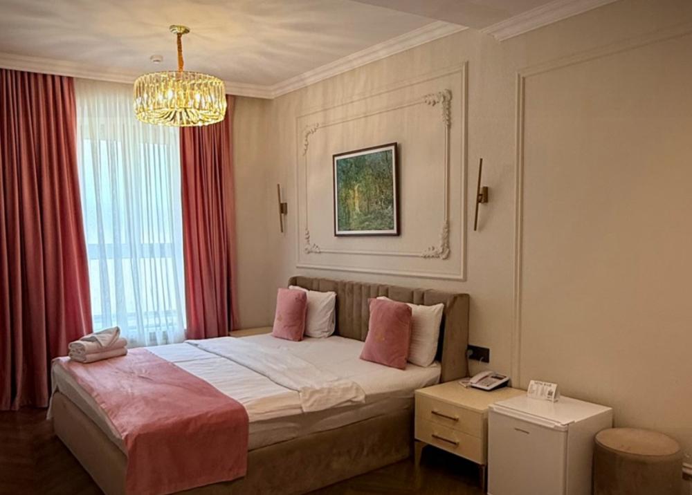 Двухместный номер категории делюкс площадью 30 кв.м. с 1 двуспальной кроватью размера Queen size и собственной ванной комнатой с душем, феном, гигиеническим набором, халатами, полотенцами и тапочками. Номер оснащен кондиционером, мини-холодильником, шкафом-купе, телевизором с плоским экраном с цифровым ТВ и WI-FI. В номере есть рабочий стол, мини-бар, набор для приготовления чая и кофе, сейф, утюг и гладильная доска, бутилированная вода. Из окна открывается вид на город.