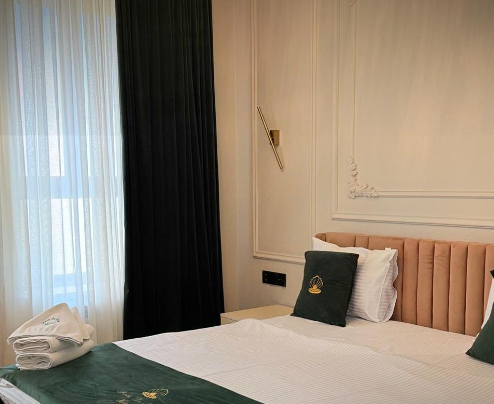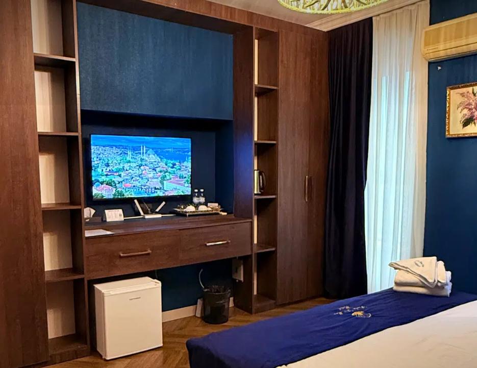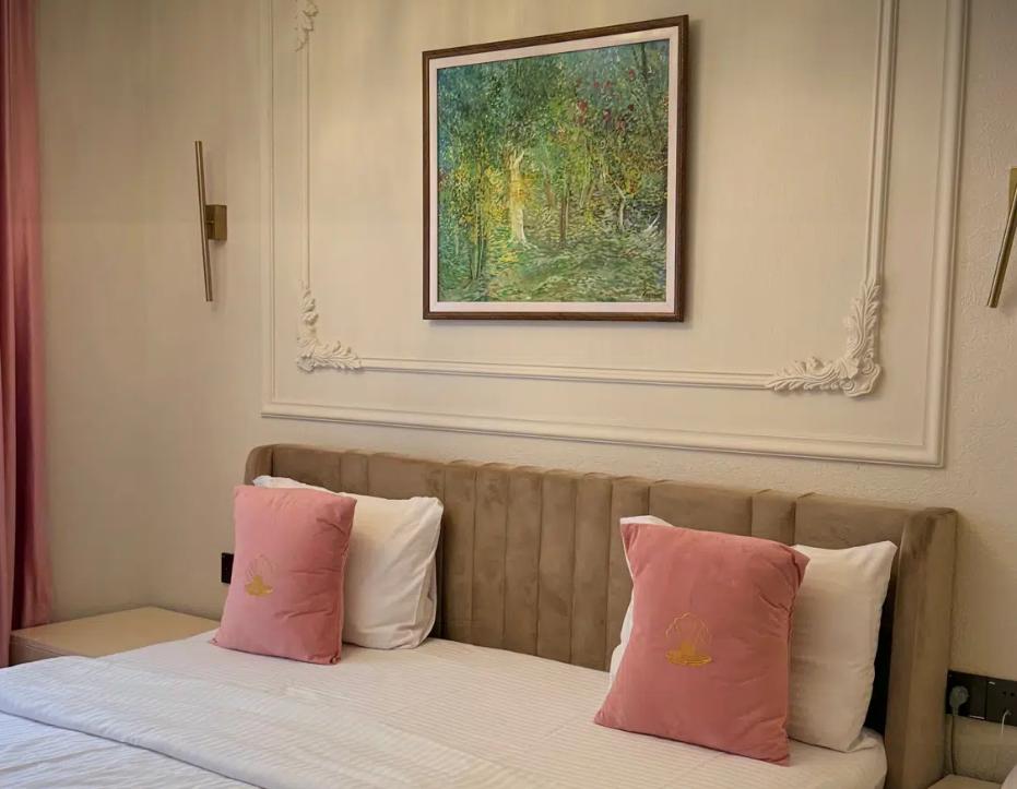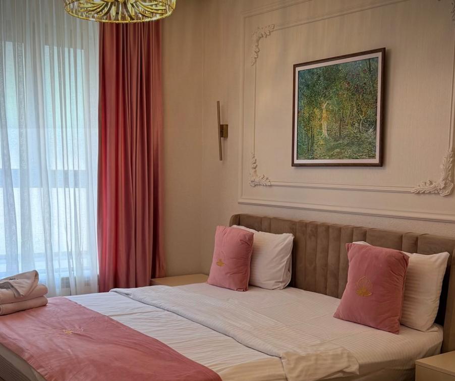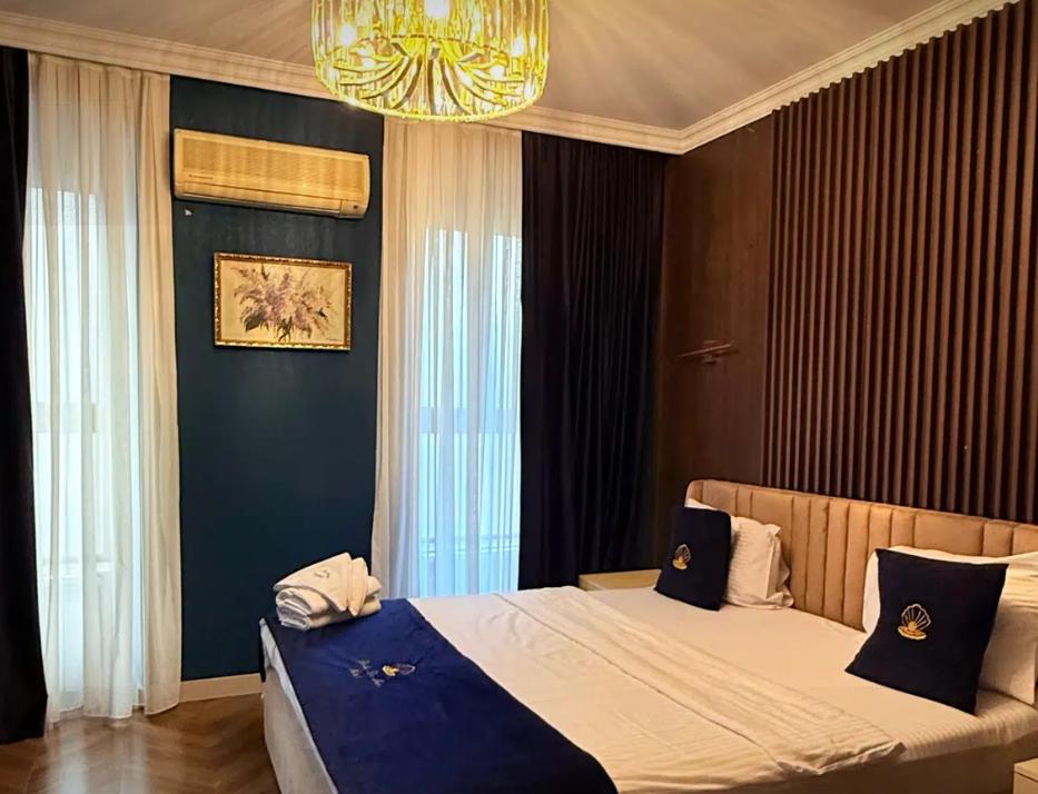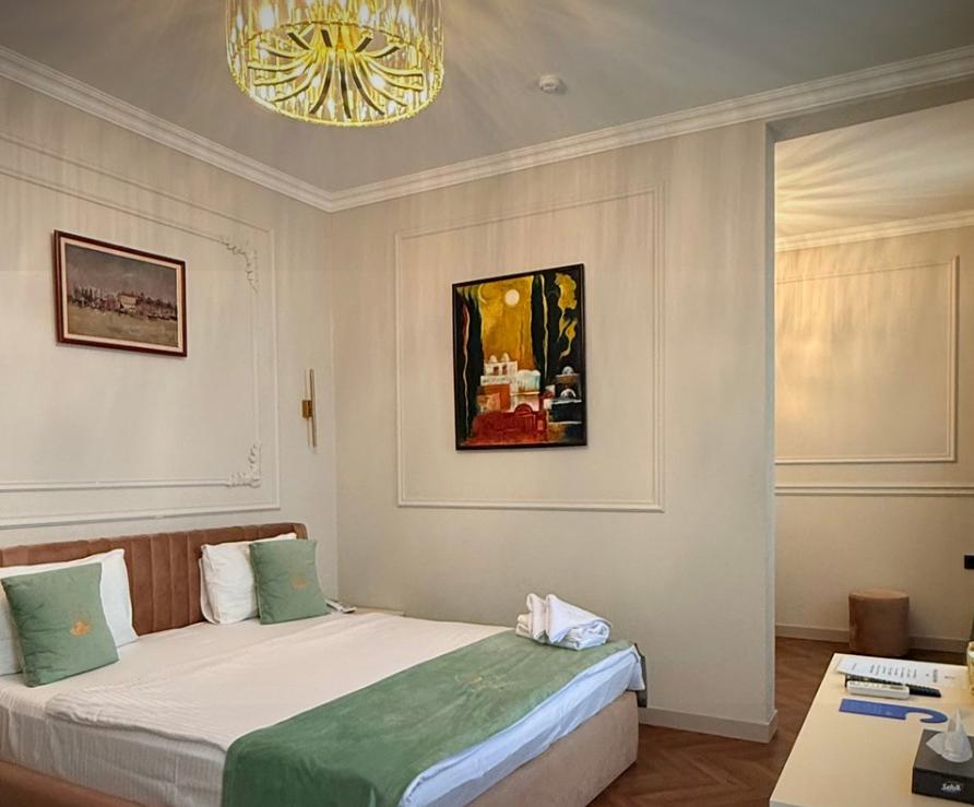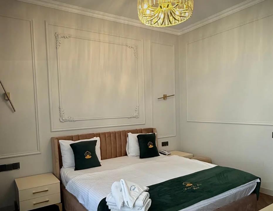 Двухместный номер категории делюкс площадью 30 кв.м. с 1 двуспальной кроватью размера Queen size и собственной ванной комнатой с душем, феном, гигиеническим набором, халатами, полотенцами и тапочками. Номер оснащен кондиционером, мини-холодильником, шкафом-купе, телевизором с плоским экраном с цифровым ТВ и WI-FI. В номере есть рабочий стол, мини-бар, набор для приготовления чая и кофе, сейф, утюг и гладильная доска, бутилированная вода. Из окна открывается вид на город.