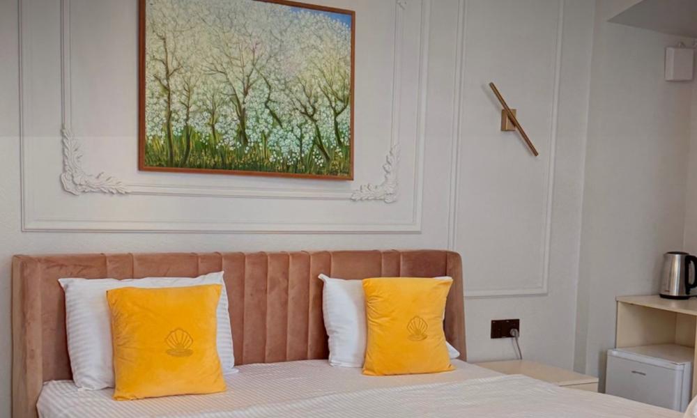 Стандартный двухместный номер площадью 20 кв.м. с 1 двуспальной кроватью и собственной ванной комнатой с душем, феном, гигиеническим набором, халатами, полотенцами и тапочками. Номер оснащен мини-холодильником, шкафом-купе, телевизором с плоским экраном с цифровым ТВ и WI-FI. В номере есть рабочий стол, мини-бар, чайник, сейф, гладильная доска, бутилированная вода. Из окна открывается вид на город.