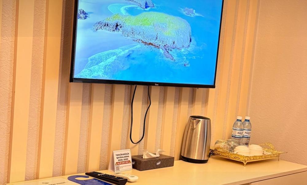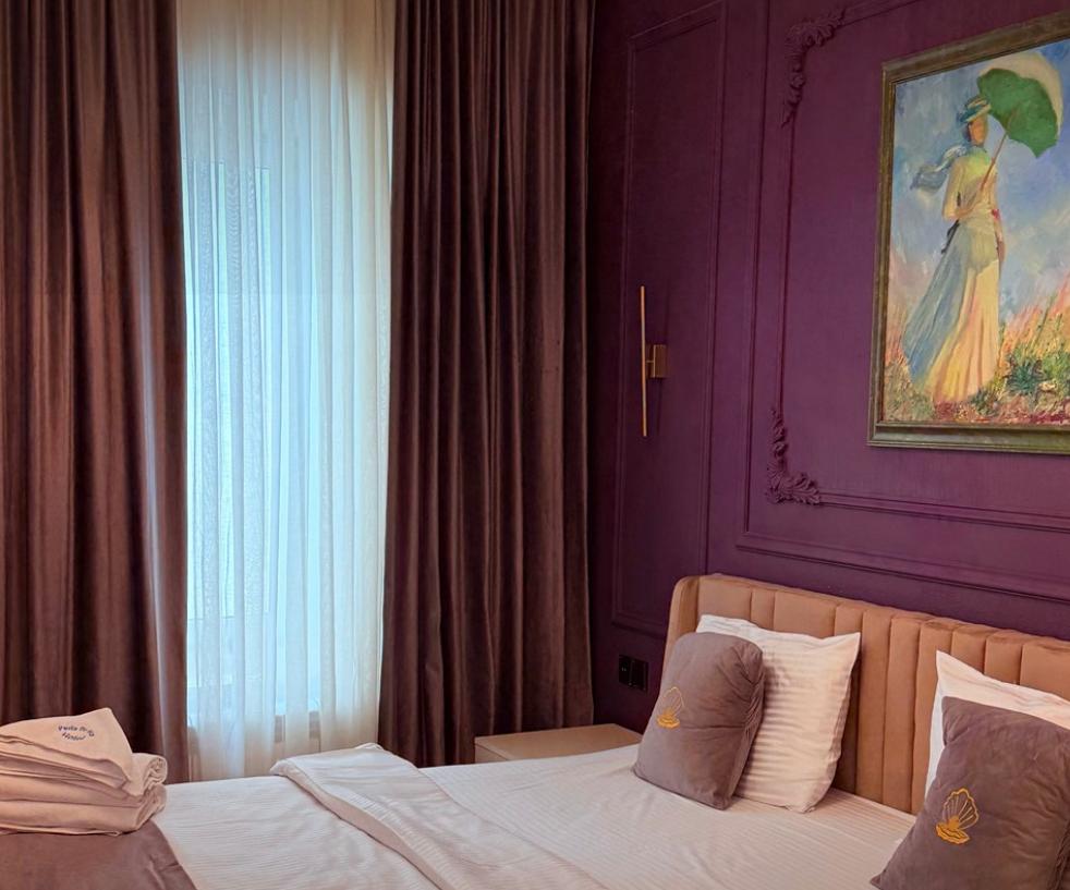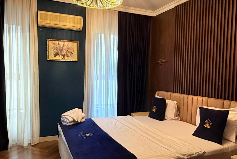 Двухкомнатный 4-местный семейный номер категории полулюкс площадью 40 кв.м. с балконом, 2 двуспальными кроватями и собственной ванной комнатой с душем, феном, гигиеническим набором, халатами, полотенцами и тапочками. Номер оснащен кондиционером, мини-холодильником, шкафом-купе, телевизором с плоским экраном с цифровым ТВ и WI-FI. В номере есть рабочий стол, мини-бар, набор для приготовления чая и кофе, сейф, утюг и гладильная доска, бутилированная вода. Из окна открывается вид на город.