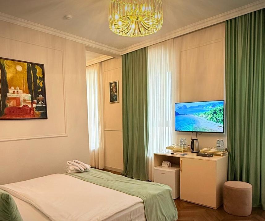 Бюджетный двухместный номер площадью 15 кв.м. с 1 двуспальной кроватью и собственной ванной комнатой с душем, феном, гигиеническим набором, халатами, полотенцами и тапочками. Номер оснащен мини-холодильником, шкафом-купе, телевизором с плоским экраном с цифровым ТВ и WI-FI. В номере есть мини-бар, гладильная доска, бутилированная вода. Из окна открывается вид на город.