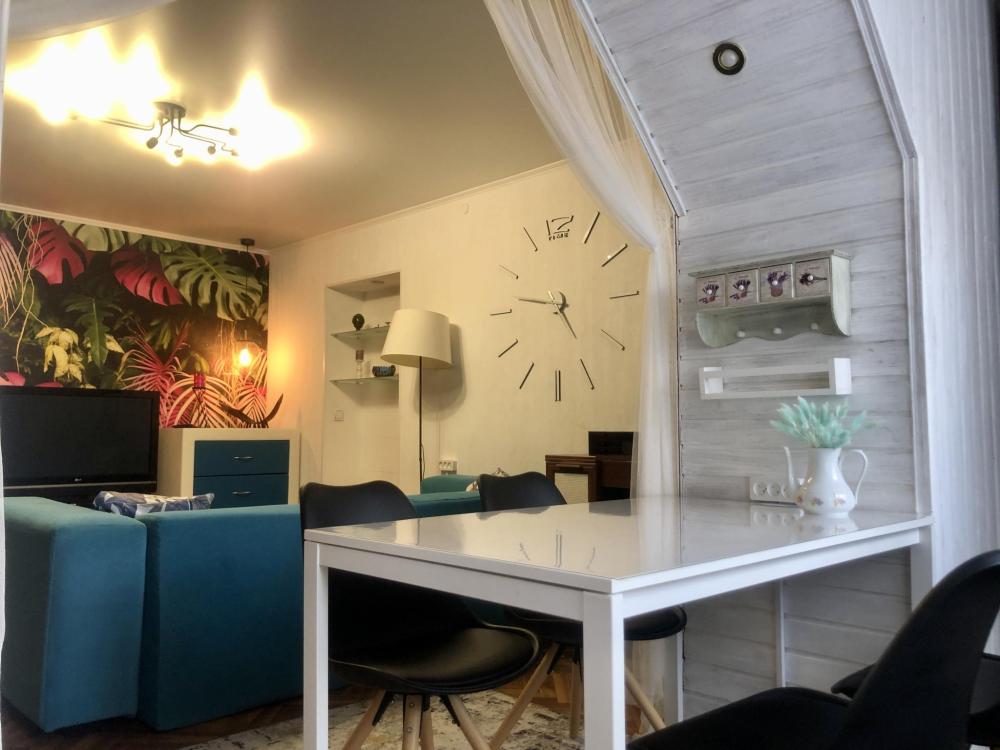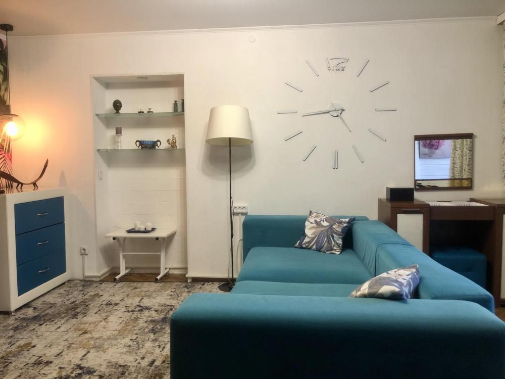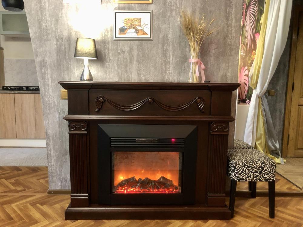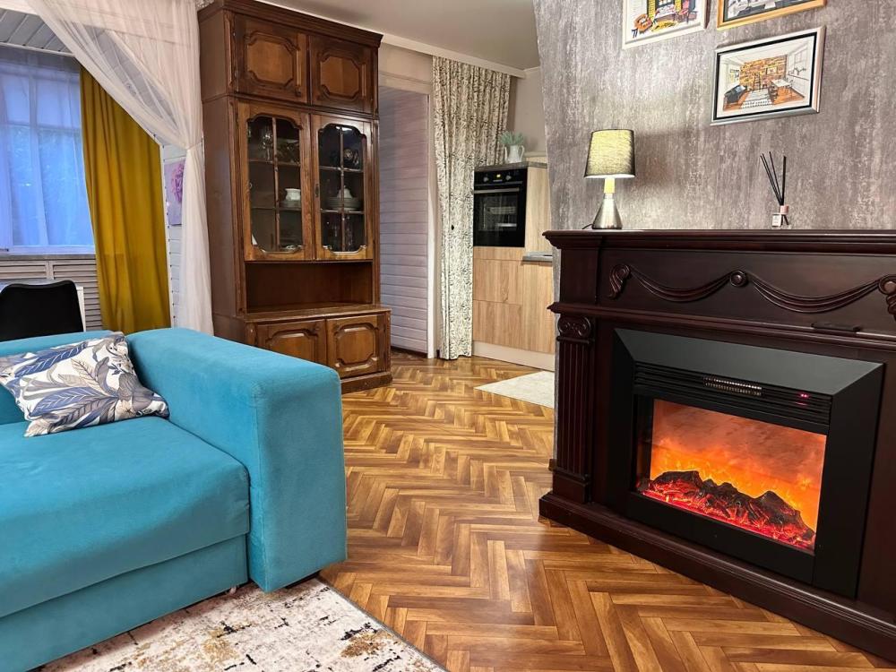 Просторная студия с яркой зоной отдыха, полноценной спальней и стильной кухней. Просторная гостиная с мягким большим диваном, Smart-TV и камином. Уютная спальня с полноценной кроватью. Кухня со всем необходимым: посуда, техника, стол на 4 персоны. Современный санузел с интересным деревом в отделке. Wi-Fi, стиралка, фен, чайник — всё для комфортного быта