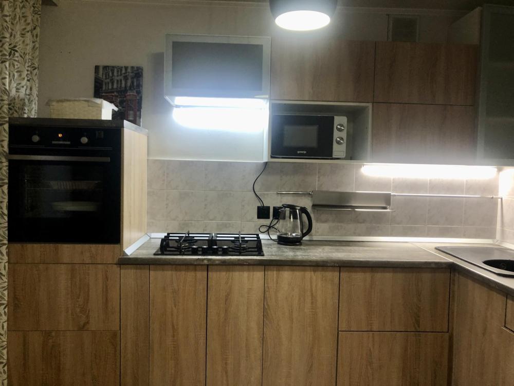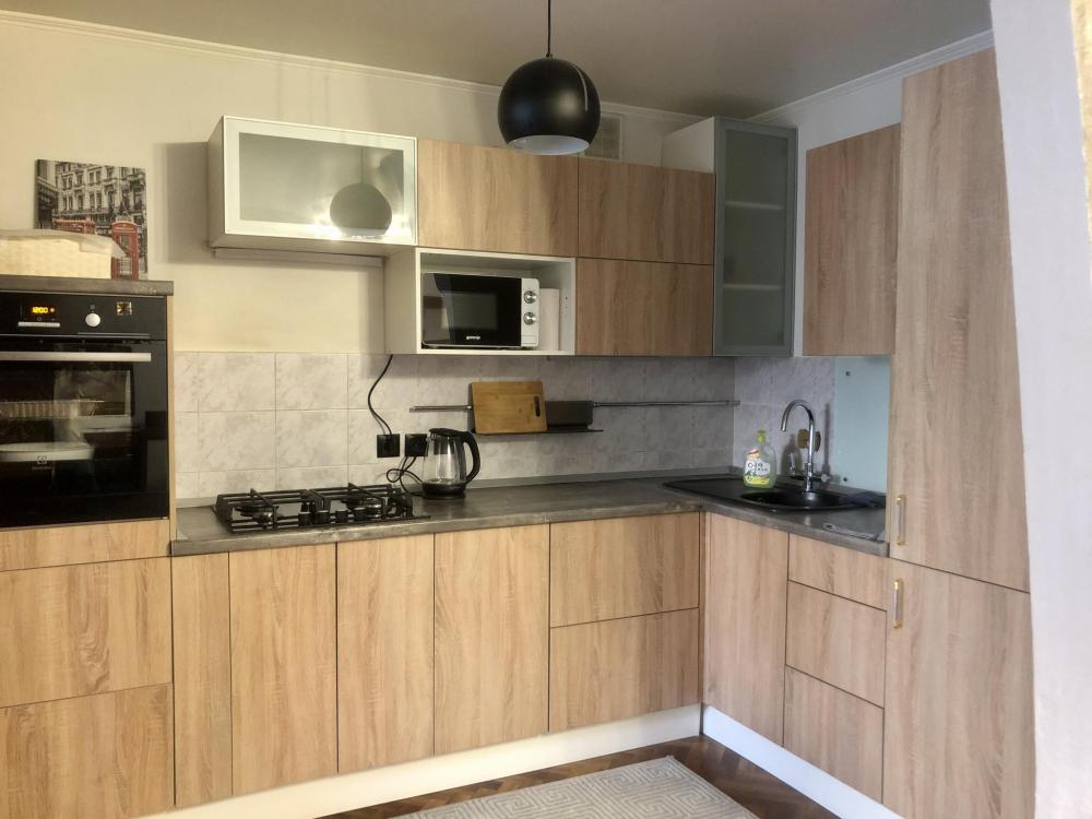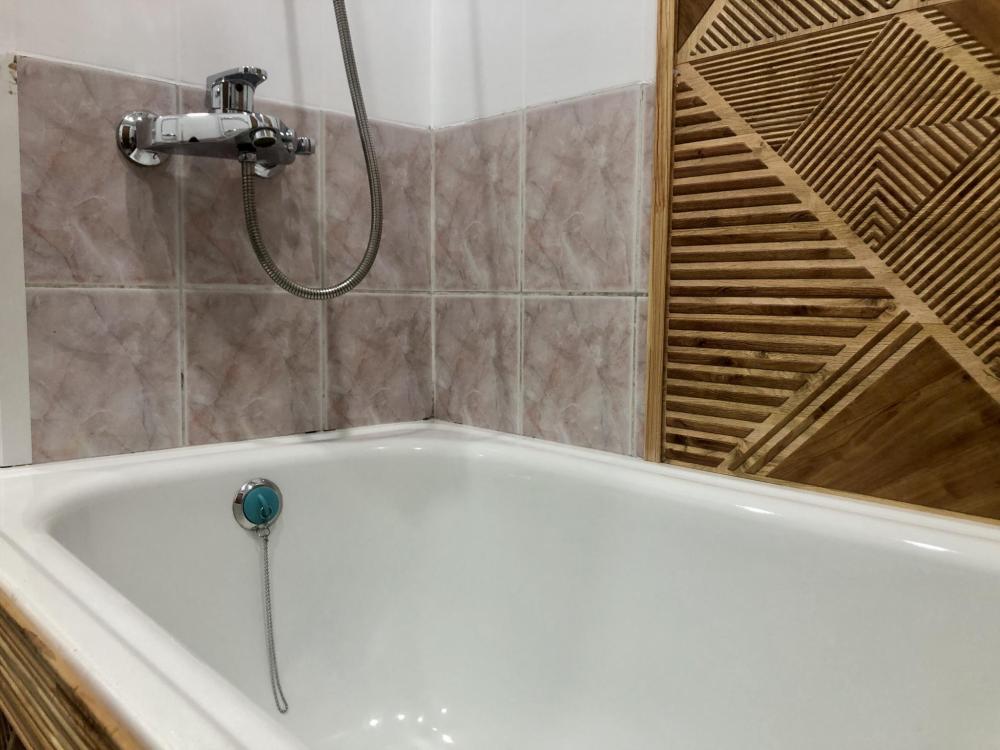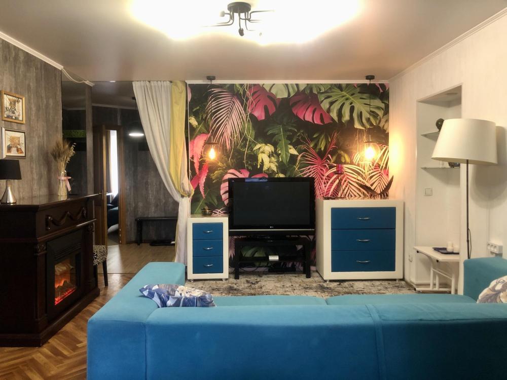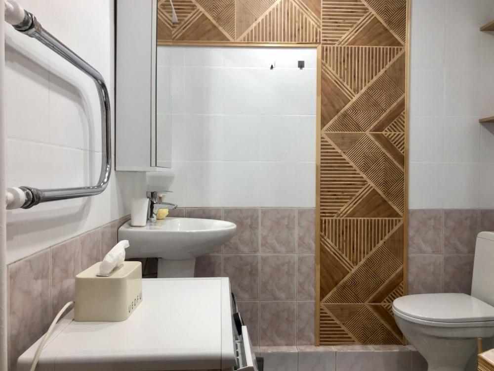Просторная студия с яркой зоной отдыха, полноценной спальней и стильной кухней. Просторная гостиная с мягким большим диваном, Smart-TV и камином. Уютная спальня с полноценной кроватью. Кухня со всем необходимым: посуда, техника, стол на 4 персоны. Современный санузел с интересным деревом в отделке. Wi-Fi, стиралка, фен, чайник — всё для комфортного быта