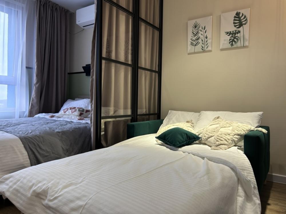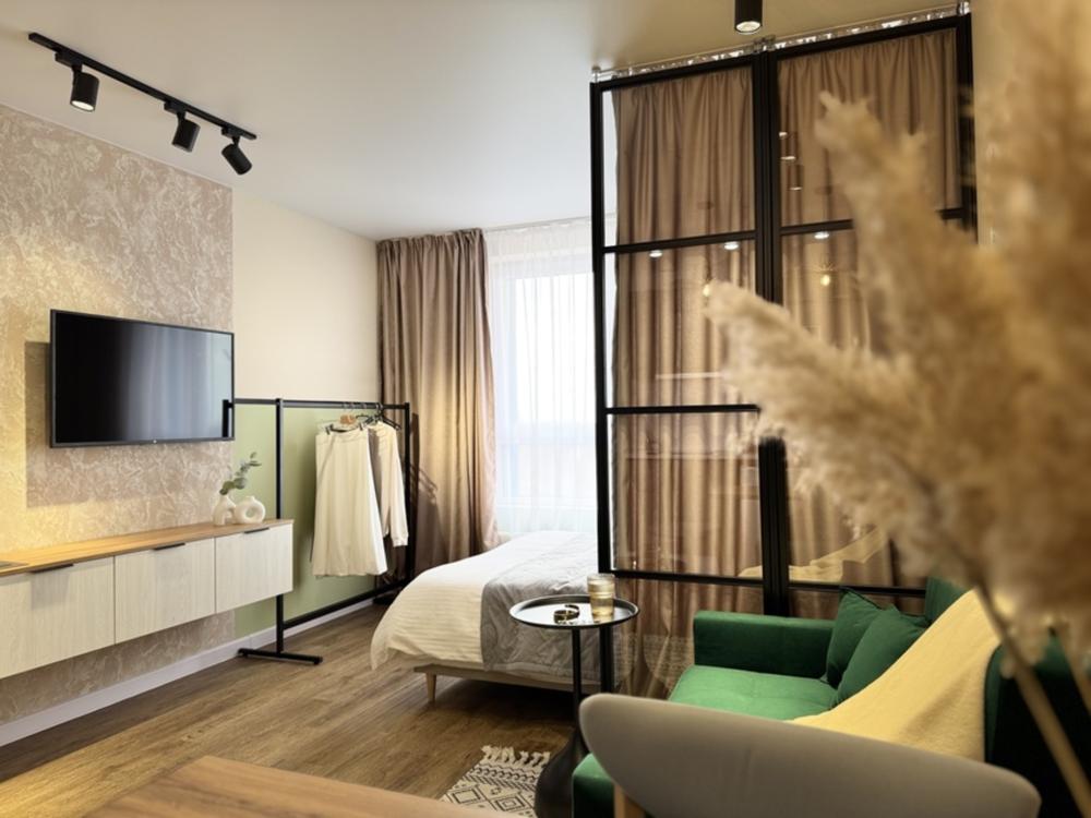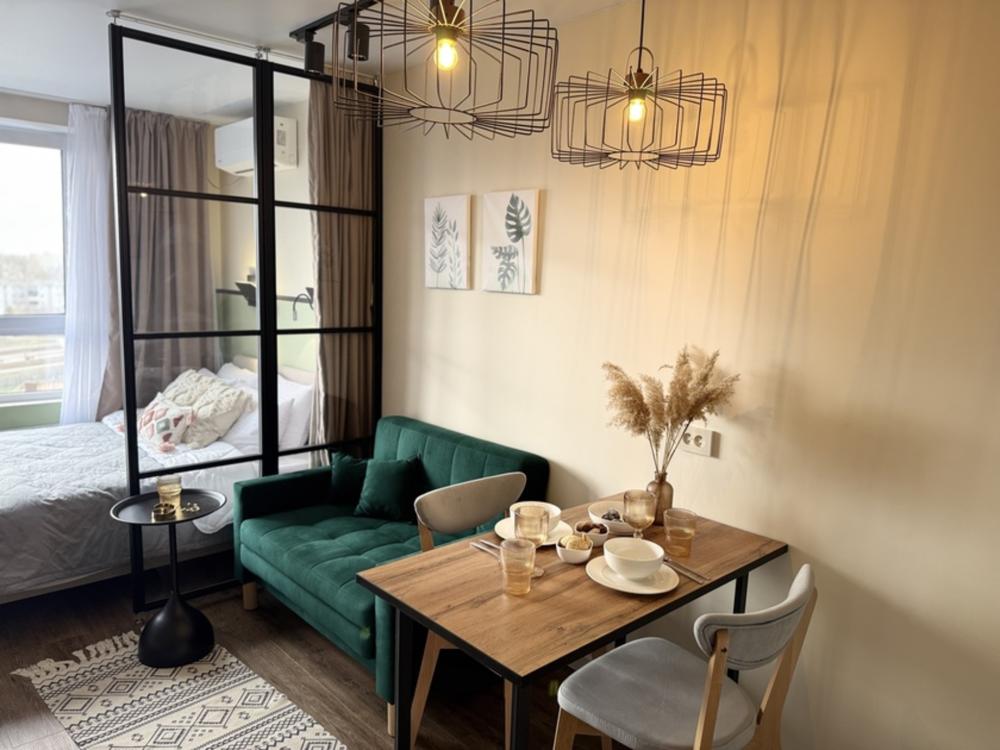 Уютные апартаменты, оборудованные всем необходимым для комфортного проживания. В апартаментах: двуспальная кровать, диван, кухня с обеденной зоной, оборудованная всей необходимой техникой и посудой, санузел с душем. Гостям предоставляется: постельное белье, полотенца, одноразовые тапочки, средства гигиены.