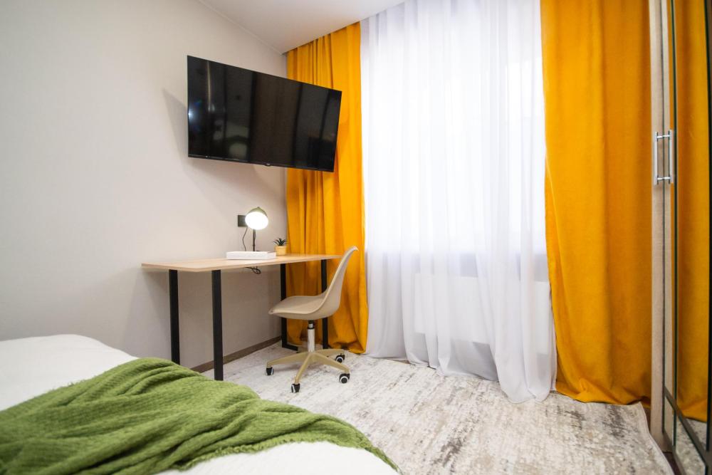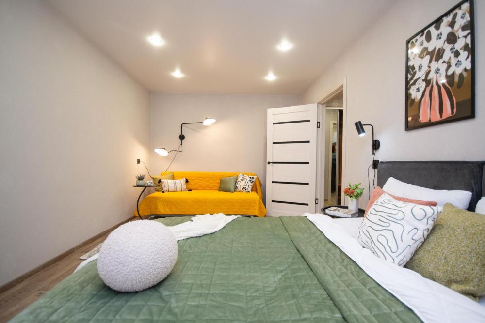 Дизайнерская двухкомнатная квартира со всеми удобствами на шосе Саратовское. Для комфортного проживания гостей апартаменты оборудованы всем необходимым: большие двуспальные кровати с ортопедическим матрасом и всегда свежим, отутюженным постельным бельём, раскладной диван, набор чистых полотенец, Smart-TV - в каждой комнате, уютная кухня с новым гарнитуром и всем необходимым (газовая плита, духовка, холодильник, микроволновка, чайник, посуда, столовые приборы). Также в квартире: утюг, гладильная доска, фен и другие мелочи для удобства.