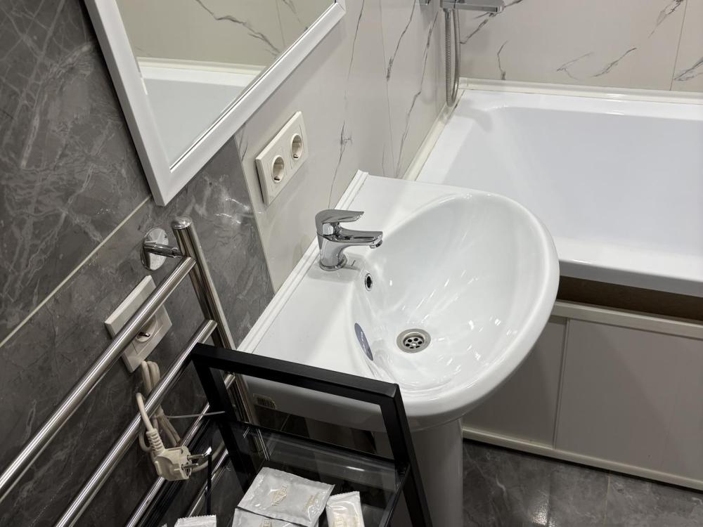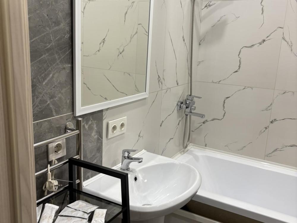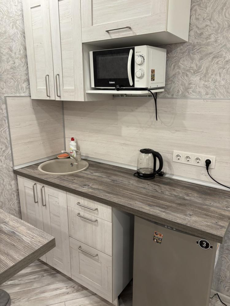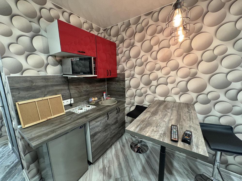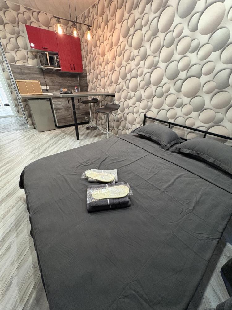 Номер студия с 1 двуспальной кроватью, оборудованный всем необходимым для комфортного проживания. В номере: кухонная зона с необходимой посудой, микроволновкой и электрическим чайником, телевизор, Wi-Fi, санузел с ванной. Гостям предоставляется постельное белье и полотенца.