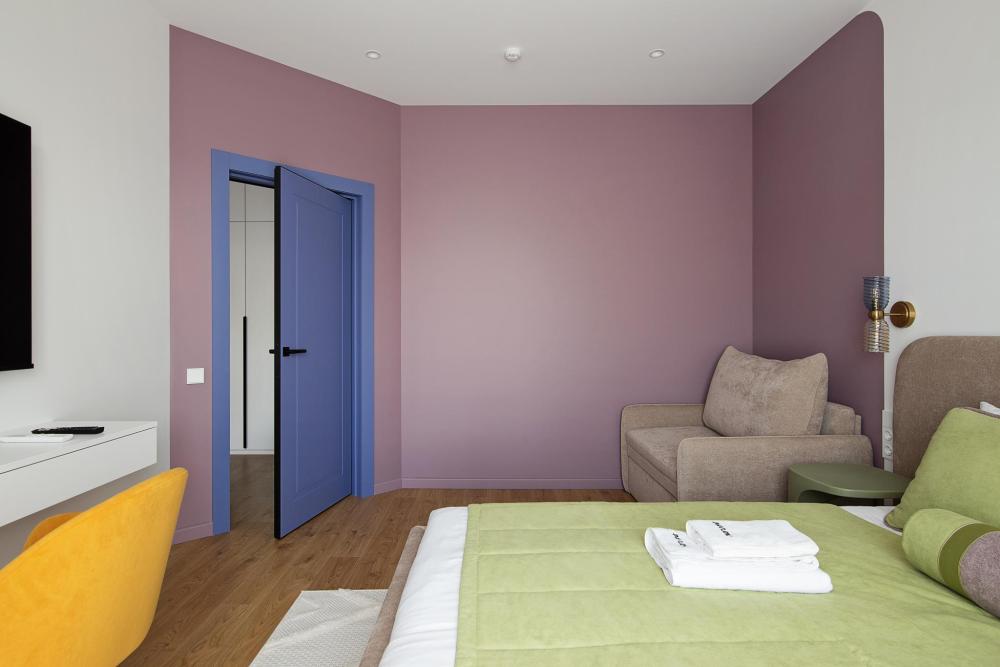 Евродвушка Pavlov «Цветные сны» — дизайнерские апартаменты в Балтийске, в 2 минутах пешком от городского пляжа. Площадь — 41 м², комфортное размещение до 5 гостей. Подходят для пары, семьи с детьми или небольшой компании, которая ценит стиль, комфорт и удобное расположение. Внутри: просторная двуспальная кровать 160×200, диван-кровать 140×200 (еврокнижка), кресло-кровать 90×200; полностью оборудованная кухня: индукционная плита, духовка с функцией СВЧ, холодильник, посудомоечная машина, кофемашина; душевая кабина, стиральная машина; два телевизора и быстрый Wi-Fi для работы или отдыха; кондиционеры в каждой комнате; балкон с видом во двор и частичным видом на море.