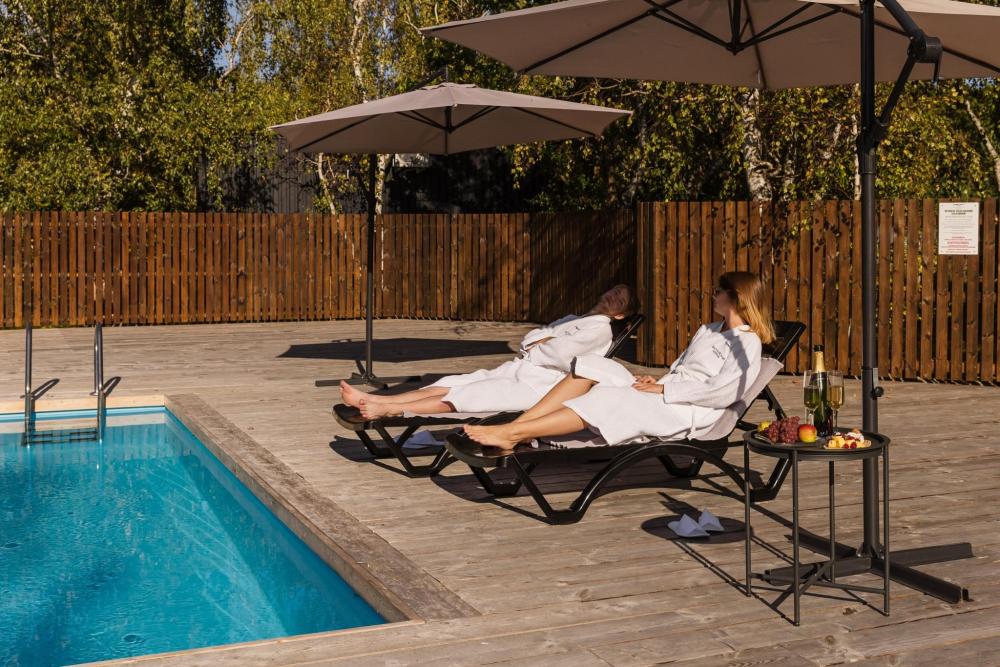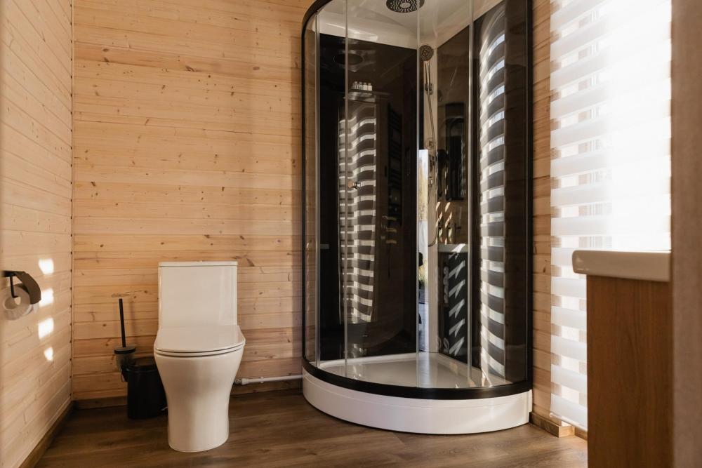 Уютный дом с панорамными окнами и просторной террасой идеально подходит как для романтического отдыха двоих, так и для размещения всей семьёй. Особый шарм — ванная комната с панорамным остеклением, где можно принимать душ, наслаждаясь окружающей тишиной и красотой хвойного леса.