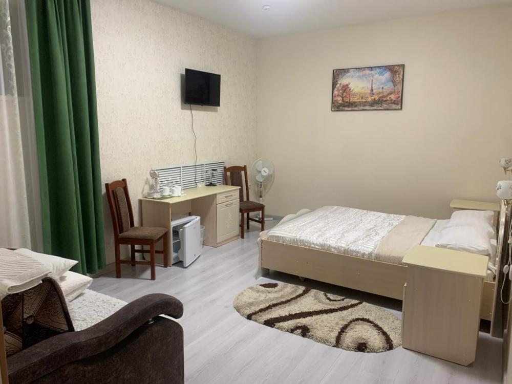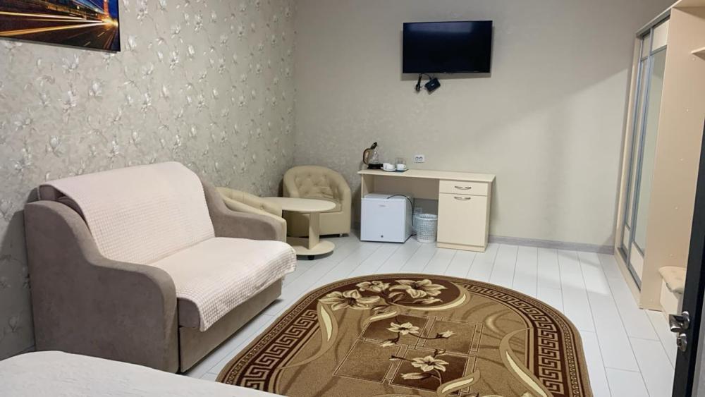 Номер стандарт семейный. В номере имеется: двуспальная кровать диван прикроватная тумбочка столик стулья холодильник шкаф телевизор комод