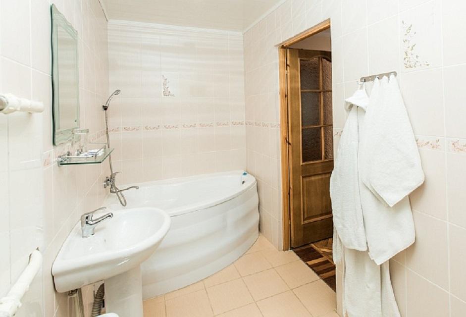 В гостиной — уютная мягкая мебель, большая рабочая зона. В спальне — широкая двуспальная кровать с ортопедическим матрасом (160x200), телевизор. Номера «Люкс» — оптимальный вариант для гостей, выбирающих комфортное проживание в отеле