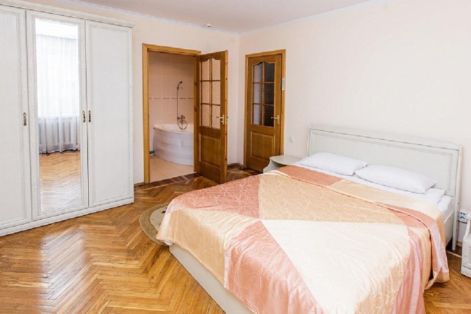Просторный трёхкомнатный VIP-номер расположен на 3 этаже гостиницы «Горизонт». Такой номер может вместить от 1 до 5 человек. Оснащение номера: уютная гостиная, 2 спальни, 2 ванны (биде, туалет, умывальник, косметические принадлежности), плазменный телевизор, рабочий стол, 2 двуспальные кровати (160x200), кабельное телевидение, холодильник, шкаф для багажа и предметов гардероба, Wi-Fi, телефон, чайник, фен (по запросу). Площадь апартаментов составляет 120 м2.