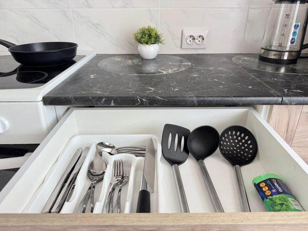 В квартире имеется все необходимое для комфортного проживания : бытовая техника, постельное белье, полотенца, посуда, утюг, двуспальная кровать, раскладной диван, кондиционер, бесплатный WI-FI, телевизор