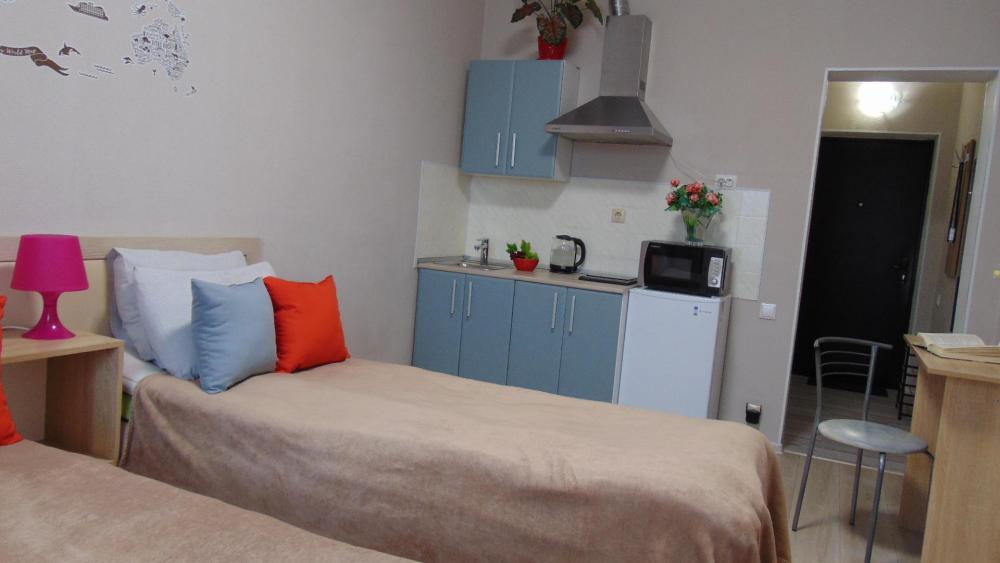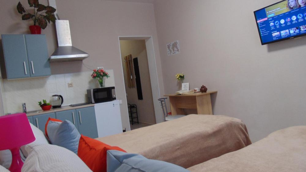 Прекрасные апартаменты студио площадью 24 кв метров со свежим капительным ремонтом. В апартаментах имеется своя полностью укомплектованная кухня с бытовой техникой (холодильник, СВЧ, Эл. чайник, варочная панель, вытяжка) и посудой. Smart TV, Wi-FI, две односпальные кровати (или большая двухспальная кровать), шкаф для одежды, фен. Собственная ванная комната с душем.и теплым полом.