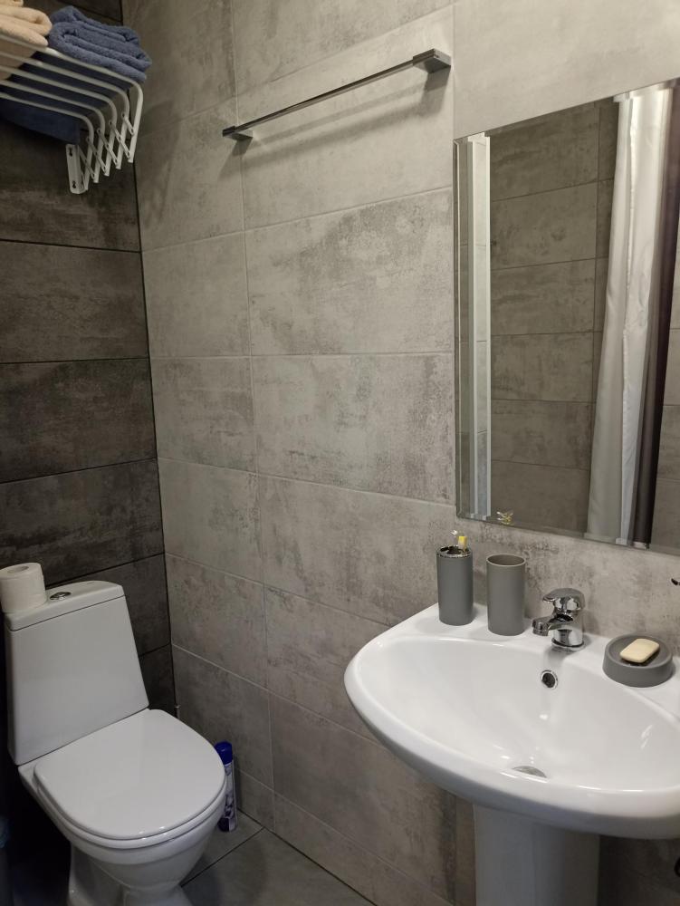 Прекрасные просторные 1 комнатные апартаменты площадью 32 кв метра со свежим капительным ремонтом. В апартаментах имеется своя полностью укомплектованная кухня с бытовой техникой (холодильник, СВЧ, Эл. чайник, варочная панель, вытяжка) и посудой. Smart TV, Wi-FI, большая двухспальная кровать размера King-Sais, диван, шкаф для одежды, фен. Собственная просторная ванная комната с душем и теплым полом. Апартаменты расположены на 2 этаже. На этаже имеется в бесплатном пользовании стиральная машинка автомат и гладильные принадлежности.