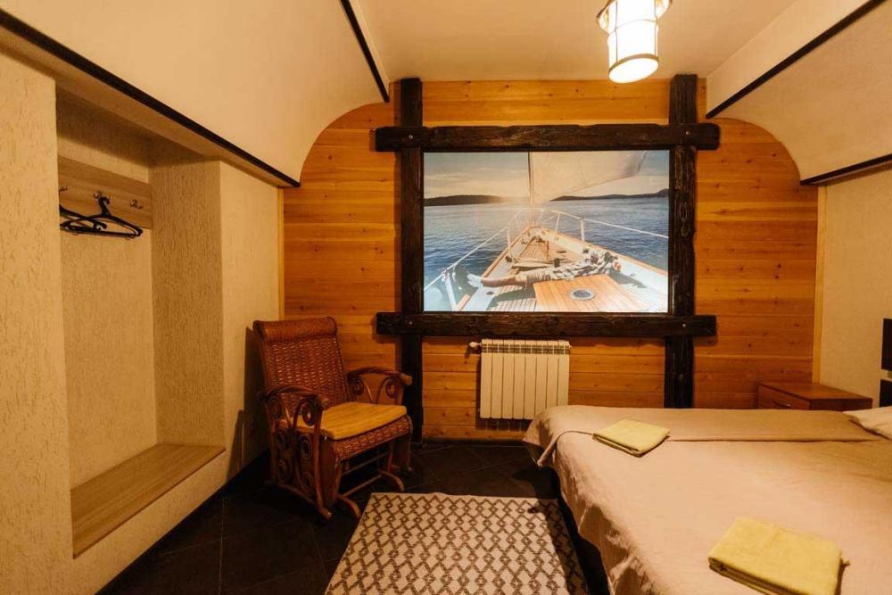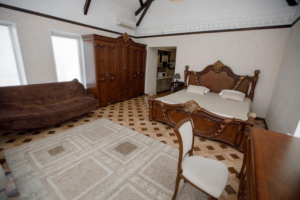 Просторные номера для размещения Гостей на двуспальной кровати, возможно размещение дополнительного спального места - еврораскладушки. Каждый номер имеет отличающийся интерьер. В мини-отеле есть общая кухня, баня и беседка BBQ.