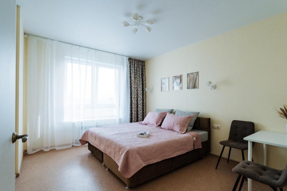 Апартаменты студия с удобным расположением. Квартира находится недалеко от ТРЦ Планета. До центра Уфы 4,8км, до ж/д вокзала около 7км. До магазина продуктов, кафе и остановки общественного транспорта 2-3мин. пешком. ...