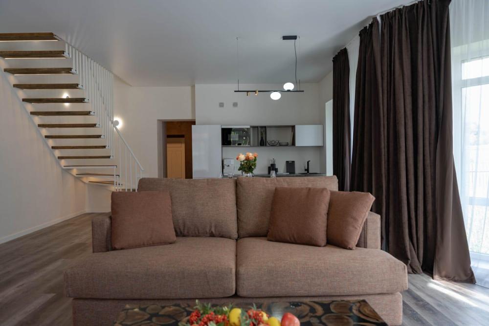 Две большие террасы с великолепным видом на горы — идеальное место для утреннего кофе и вечерних встреч; Личный кинозал с большим экраном и проектором в гостиной — наслаждайтесь любимыми фильмами в домашней атмосфере; Уютный балкон с видом на родниковое озеро и звёздное небо — для тёплых вечерних посиделок или спокойного утра с чашечкой чая; Две отдельные туалетные комнаты с просторными душевыми на каждом этаже 6 спальных мест с мебелью на заказ и премиальными матрасами Аскона (до 8 гостей с доп. местами); Современная техника: кофемашина, кондиционеры на каждом этаже, ТВ-зоны; Качественное постельное бельё и всё необходимое для полноценного отдыха.