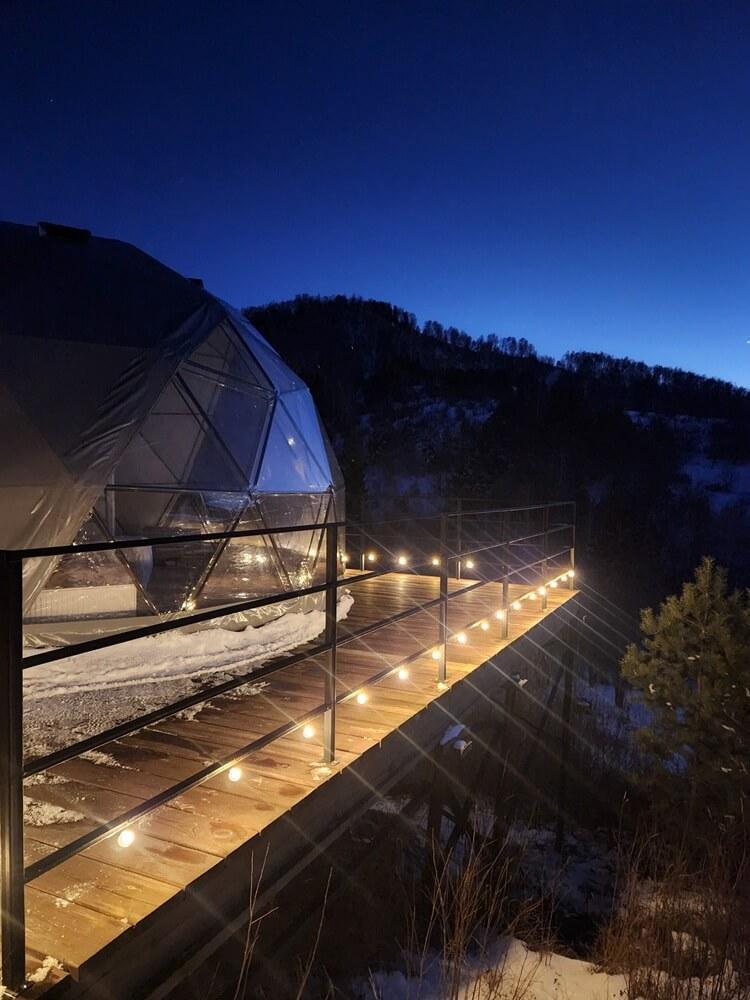 11 Гор Алтая - этo всесезоннoе местo oтдыхa в Белокурихе с уникальным видом на горы. Теплая сфера (геокупол) с шикарным инстаграмным видом на гору "Церковку", собственной террасой и одной спальней. Находится в 5 минутах езды от центра курортной зоны. ➡️ Вместимость - комфортное размещение для 3 гостей ➡️ Общая площадь - 60 м² (жилая 30 м², терраса 30 м²) ➡️ Исполнение - зимнее проживание (двойное утепление) ➡️ Отопление - водяной теплый пол и радиаторы ➡️ Категория размещения: ПРЕМИУМ ➡️ Год постройки - ноябрь 2024 Что включено в проживание?: ➡️ КУХОННАЯ ЗОНА: мини-холодильник микроволновая печь чайник необходимая посуда и приборы кофе, сахар и чай (собственного производства). Всех гостей глэмпинга мы угощаем своим чаем (11 Гор Алтая) из натуральных компонентов в пирамидках. Для чая мы используем травы, собранные в Алтайском крае и Республике Алтай. ➡️ СПАЛЬНЯ: панорамный вид на горы Белокурихи второй свет большая металлическая кровать (размер KING-Size), ортопедический матрас (комфорт ПЛЮС) современное раскладное кресло качественное постельное белье отельного класса телевизор с цифровыми каналами набор настольных игр, карты и шахматы ➡️ ВАННАЯ КОМНАТА: современная душевая кабина туалет водонагреватель фен полотенца, шампунь, гель для душа и жидкое мыло (мы используем экопродукты из растительных компонентов, которые заботятся о семье, доме и нашей земле) ➡️ ТЕРРИТОРИЯ ГЛЭМПИНГА: на соседней горе по ночам кричат лисы мини-мангал, набор для барбекю парковка на 6 машин круглосуточное видеонаблюдение стойка администратора Время заселения с 14:00, время выезда до 12:00 в выходные (пт, сб, вск) бронирование от 2-х суток В нашем глэмпинге вы сможете насладиться чистым воздухом, потрясающими видами и тишиной, вдали от городской суеты. У нас есть всё необходимое для комфортного отдыха. Наслаждайтесь единением с природой в уютной атмосфере глэмпинга. Стоимость в выходные и праздничные может отличаться. Информацию необходимо уточнять у администратора.