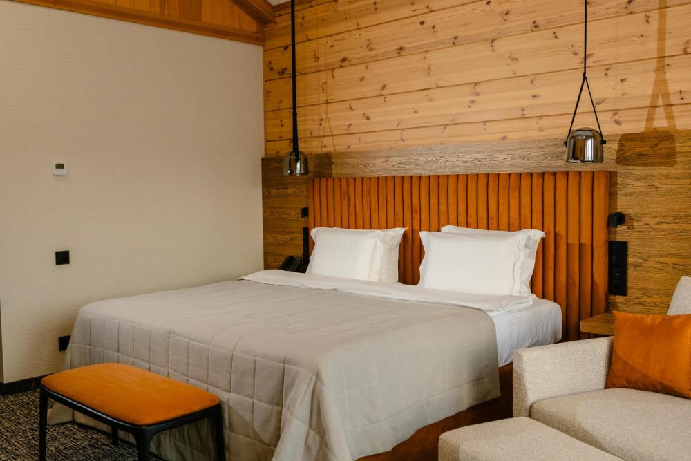 Номера категории «Супериор» в курорте «Алтай Рестарт» — это гармония уюта, пространства и природной эстетики Алтая. Идеальный выбор для гостей, ценящих повышенный комфорт и атмосферу уединённого отдыха. Светлый интерьер с натуральными материалами, продуманная планировка и панорамные окна создают ощущение спокойствия и свободы. Каждая деталь номера способствует полноценному отдыху и восстановлению после насыщенного дня. В номере: увеличенная площадь и функциональное зонирование, комфортная двуспальная кровать с премиальным текстилем, панорамные окна или вид на природу Алтая, современная ванная комната с косметикой, зона отдыха и рабочее пространство, Wi-Fi, климат-контроль, система хранения. Категория «Супериор» — это баланс комфорта, тишины и уединения, где каждый момент способствует перезагрузке и внутреннему равновесию.