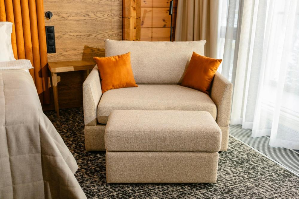 Номера категории «Полулюкс» в курорте «Алтай Рестарт» созданы для максимального комфорта и полноценного отдыха в атмосфере уюта и уединения. Просторный номер идеально подойдёт для друзей, коллег или гостей, предпочитающих раздельные спальные места без компромиссов в уровне сервиса. Интерьер выполнен в современной природной стилистике с использованием натуральных материалов и спокойных оттенков, способствующих расслаблению и восстановлению. Панорамные окна открывают живописные виды Алтая, наполняя пространство светом и ощущением свободы. В номере: две раздельные комфортные кровати с премиальным текстилем, увеличенная площадь и зонирование пространства, зона отдыха с мягкой мебелью, панорамные окна с видом на природу, современная ванная комната с расширенным набором косметики, Wi-Fi, телевизор, климат-контроль, сейф. Категория «Полулюкс» — это сочетание пространства, приватности и высокого уровня комфорта, позволяющее насладиться отдыхом в окружении силы и тишины Алтая.