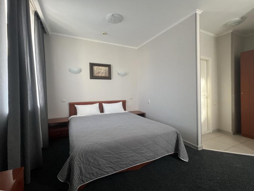 Два номера в отеле, большей площади в отличии от стандартных номеров, оборудованы большой двуспальной кроватью. Непременно современный интерьер и наличие в номере всего необходимого – телевизор (более 30 каналов различного жанра) , холодильник, чайник, прикроватная тумба, шкаф для одежды, журнальный столик, комод, стулья, ванная комната с феном, индивидуальными косметическими и банными принадлежностями.
