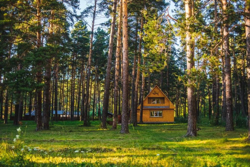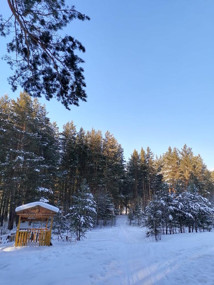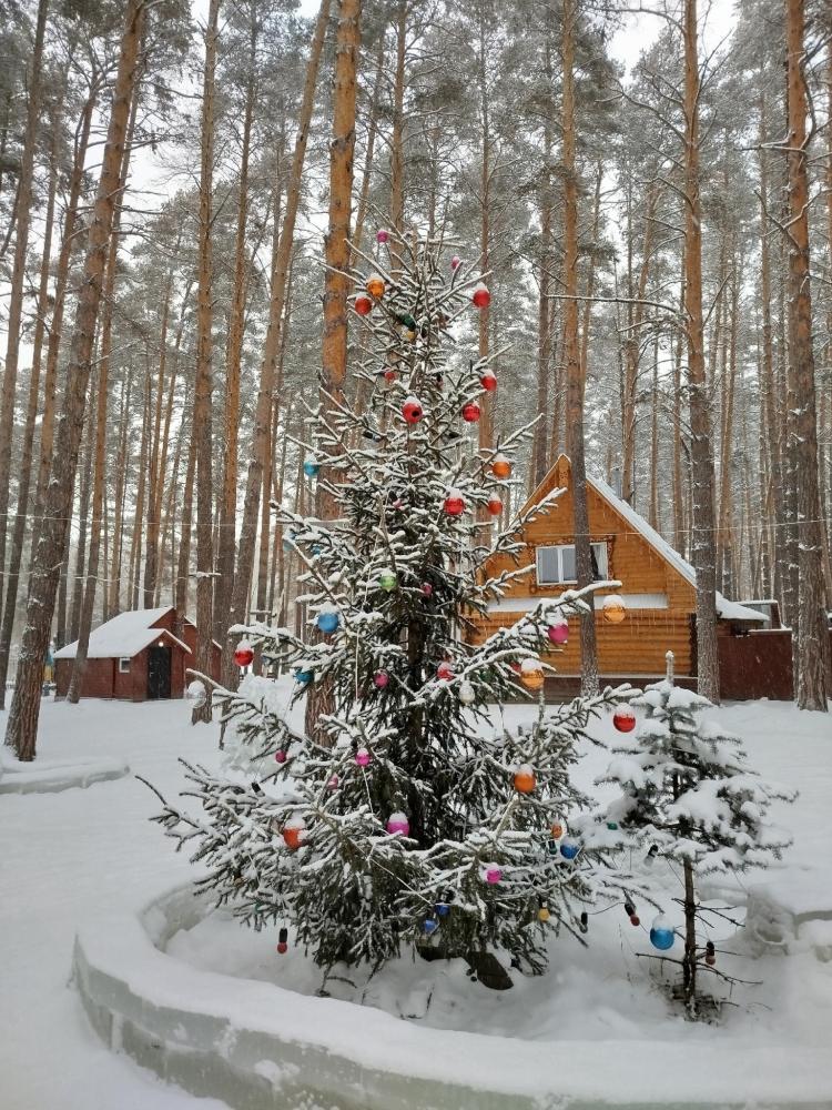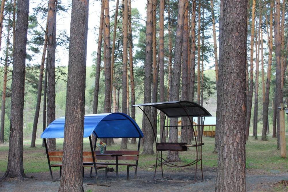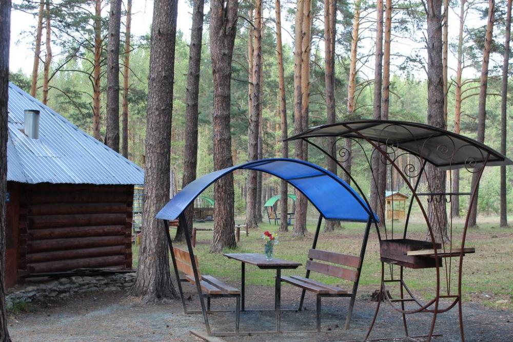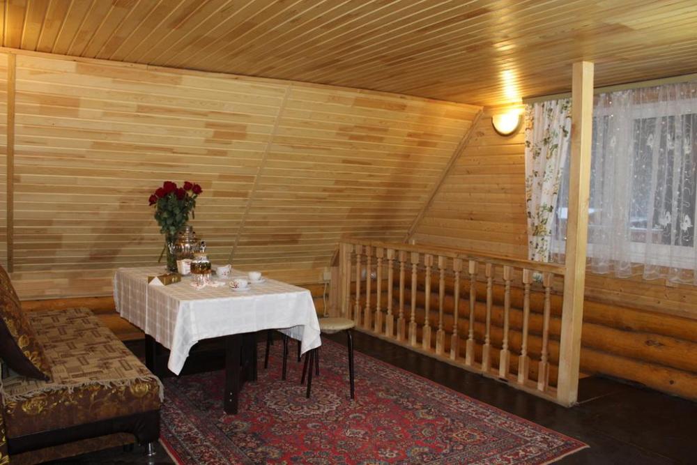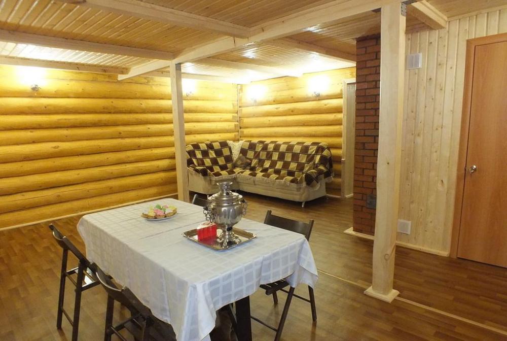Дом состоит из гостиной, кухни, санузла; оборудован аудиосистемой. Кухня оснащена электрической плитой, СВЧ-печью, электрочайником. Имеется печь, что позволяет даже в мороз поддерживать комфортную температуру.Беседка на 8 мест с мангальной зоной