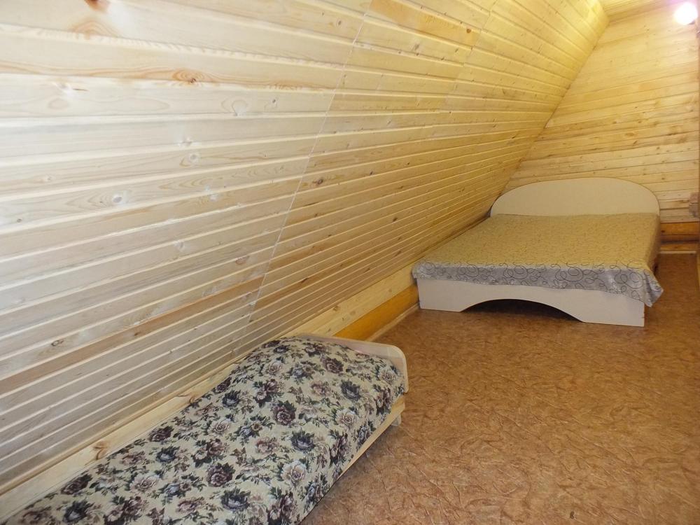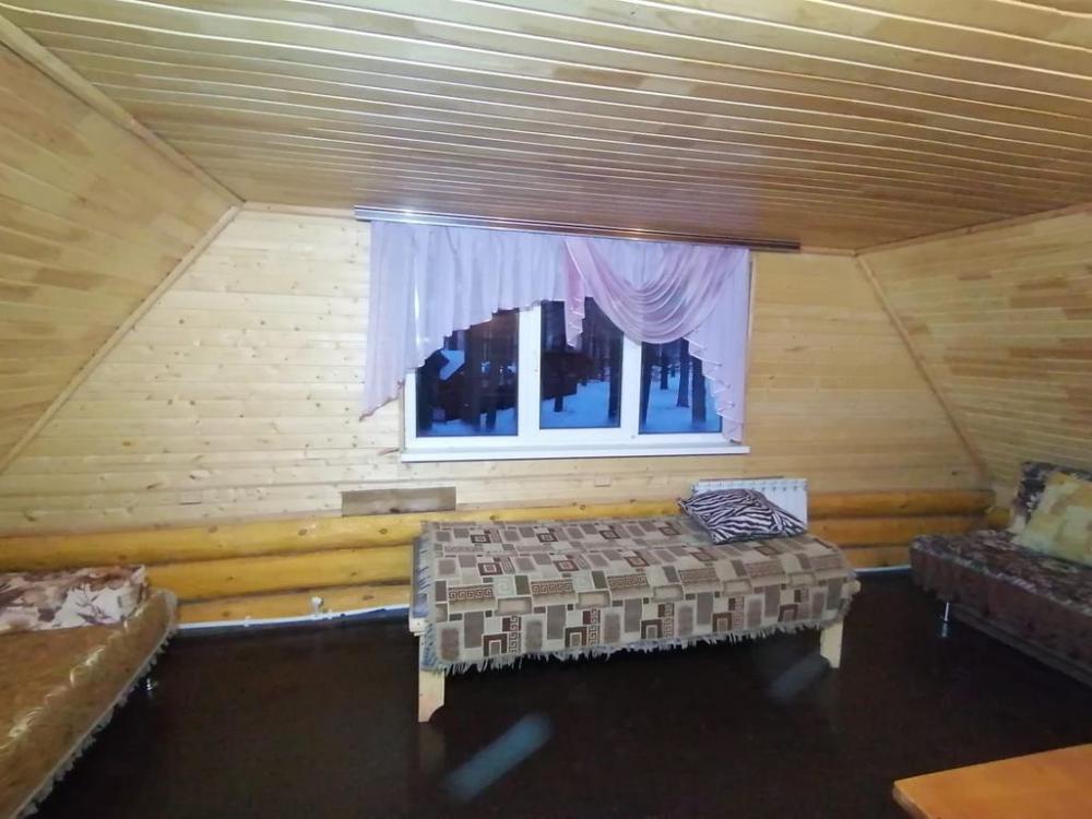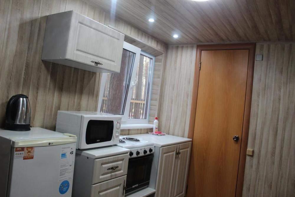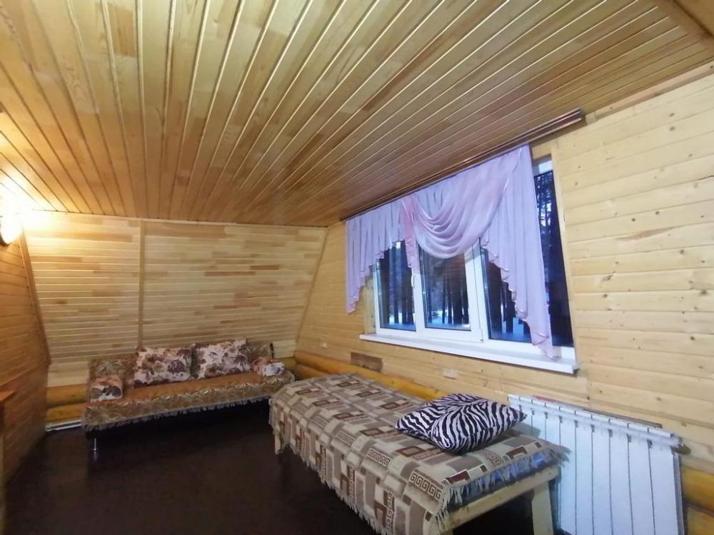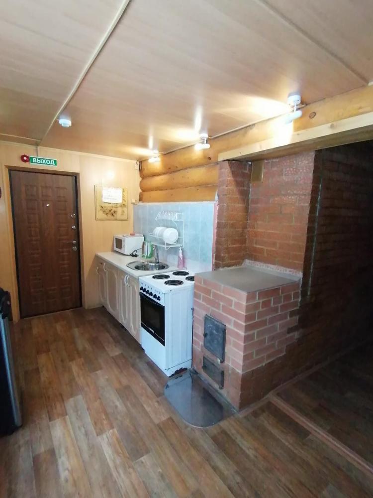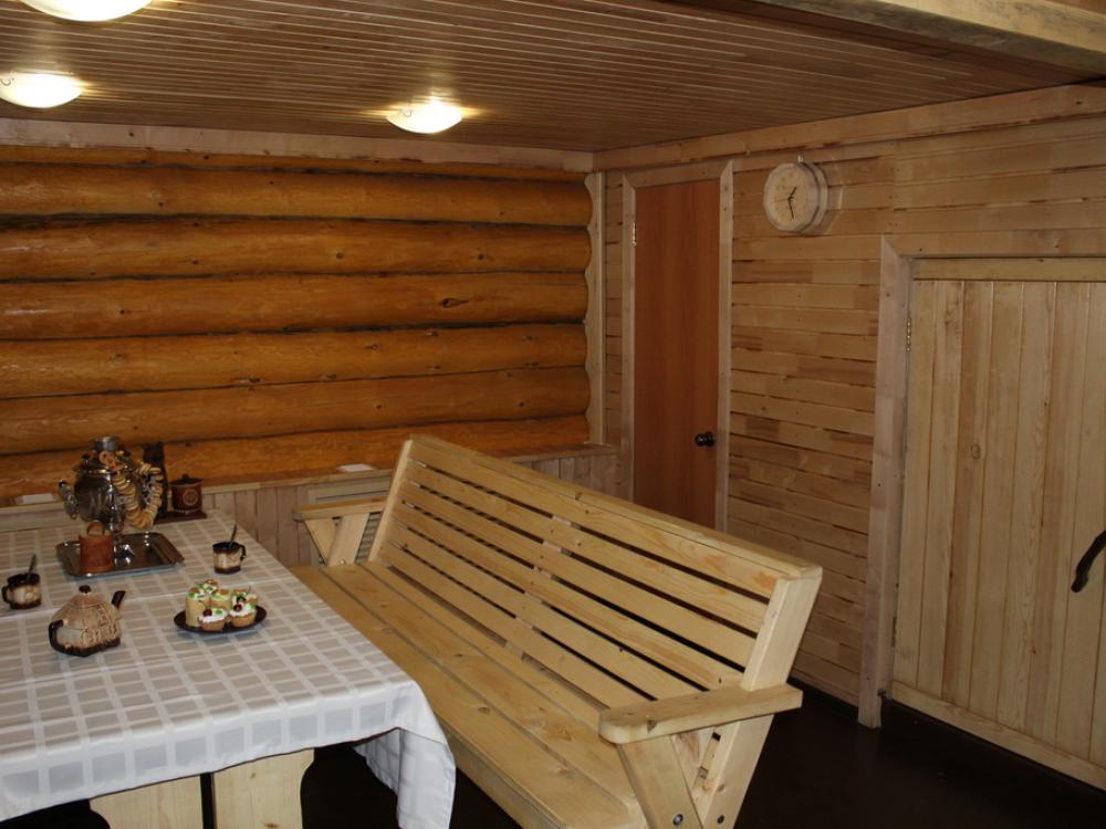 На первом этаже располагается баня с просторной комнатой отдыха, парилкой, помывочным отделением, обливным ведром. Оснащена аудиосистемой. Деревянная мебель, кухонная зона с электроплиткой, холодильником, СВЧ, электрочайником и необходимым набором посуды. Санузел. На втором этаже две раздельные спальни с мебелью. Прилегающий участок огорожен заборчиком, имеется мангальная зона.