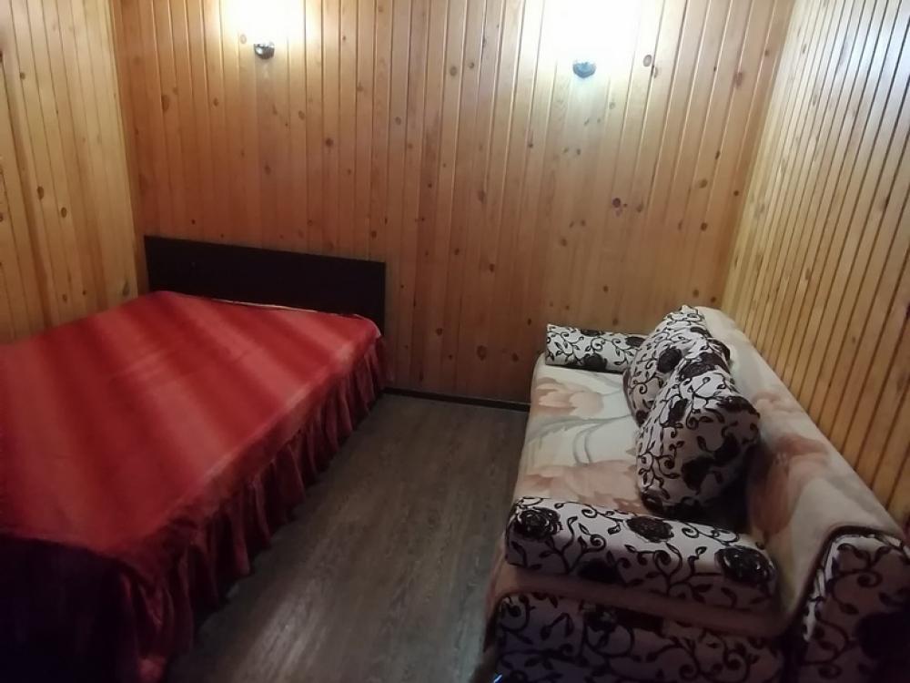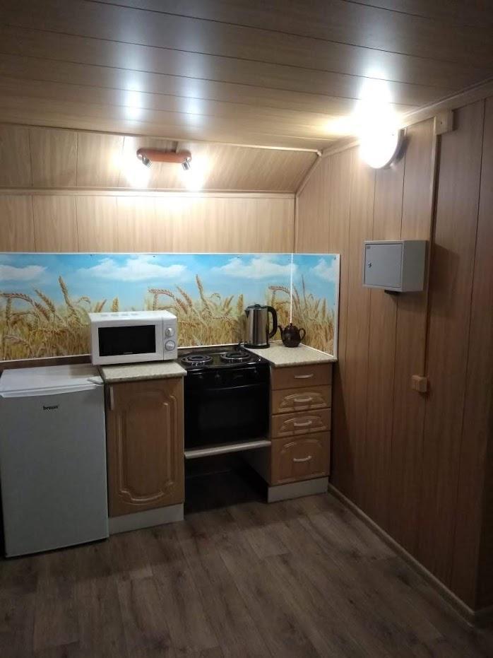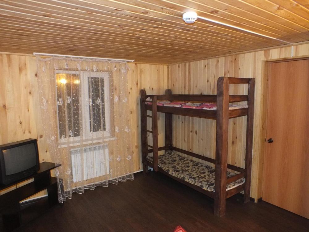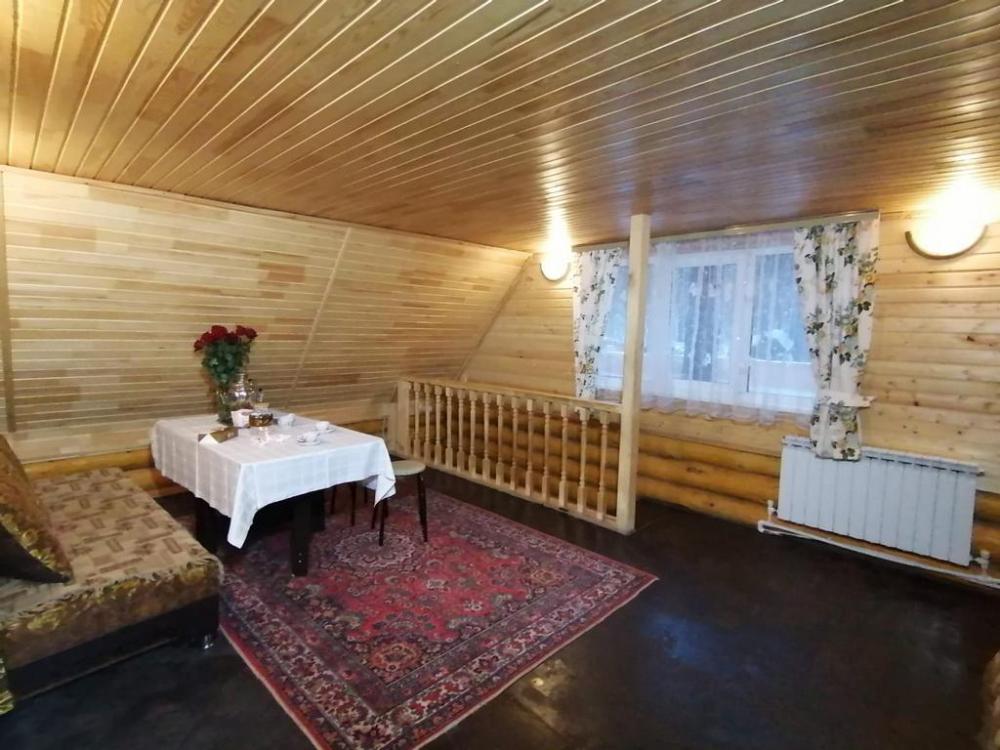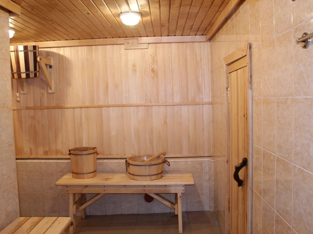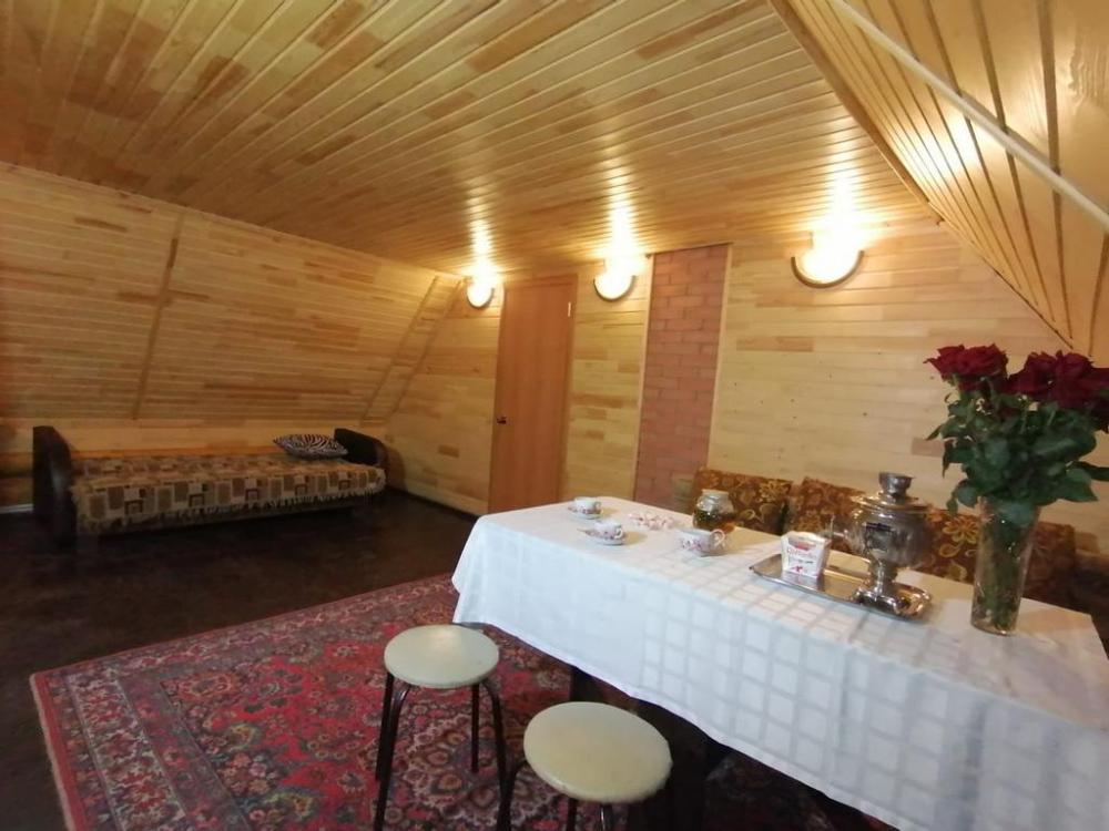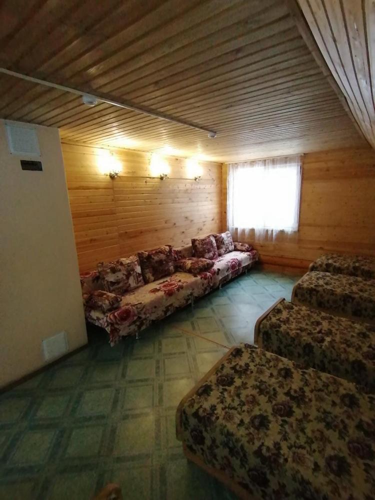 На первом этаже располагается баня с просторной комнатой отдыха, парилкой, помывочным отделением, обливным ведром. Оснащена аудиосистемой. Деревянная мебель, кухонная зона с электроплиткой, холодильником, СВЧ, электрочайником и необходимым набором посуды. Санузел. На втором этаже две раздельные спальни с мебелью. Прилегающий участок огорожен заборчиком, имеется мангальная зона.