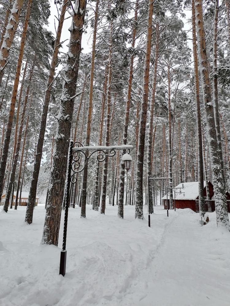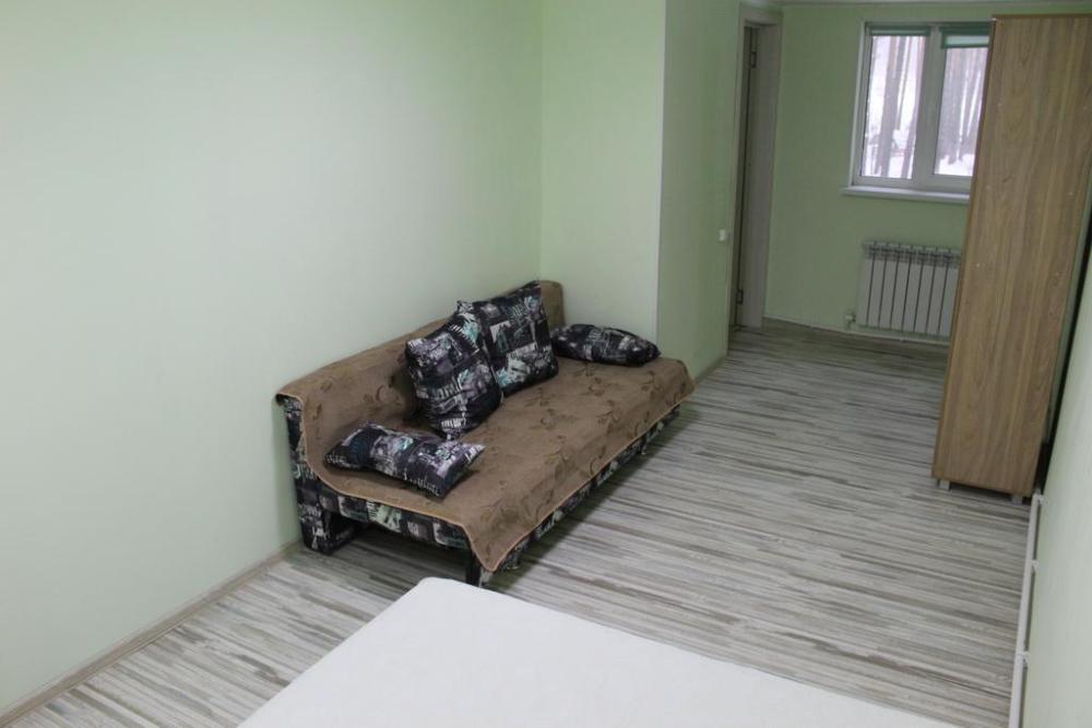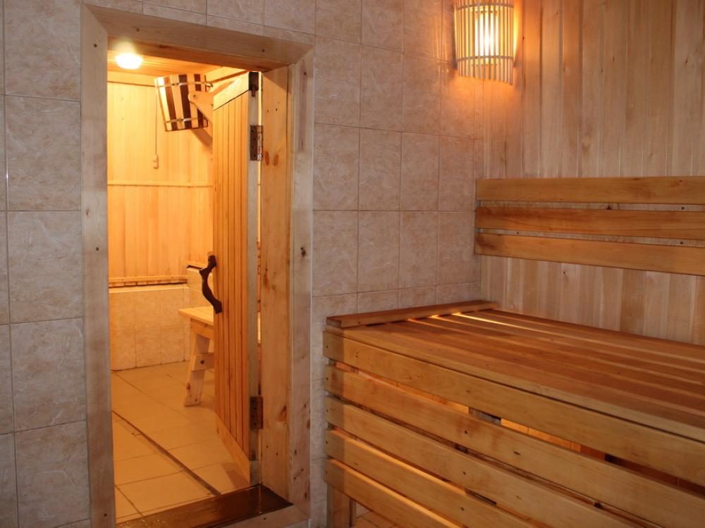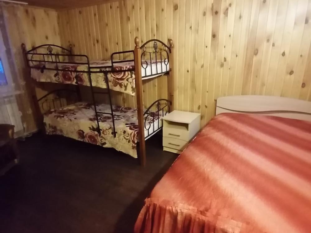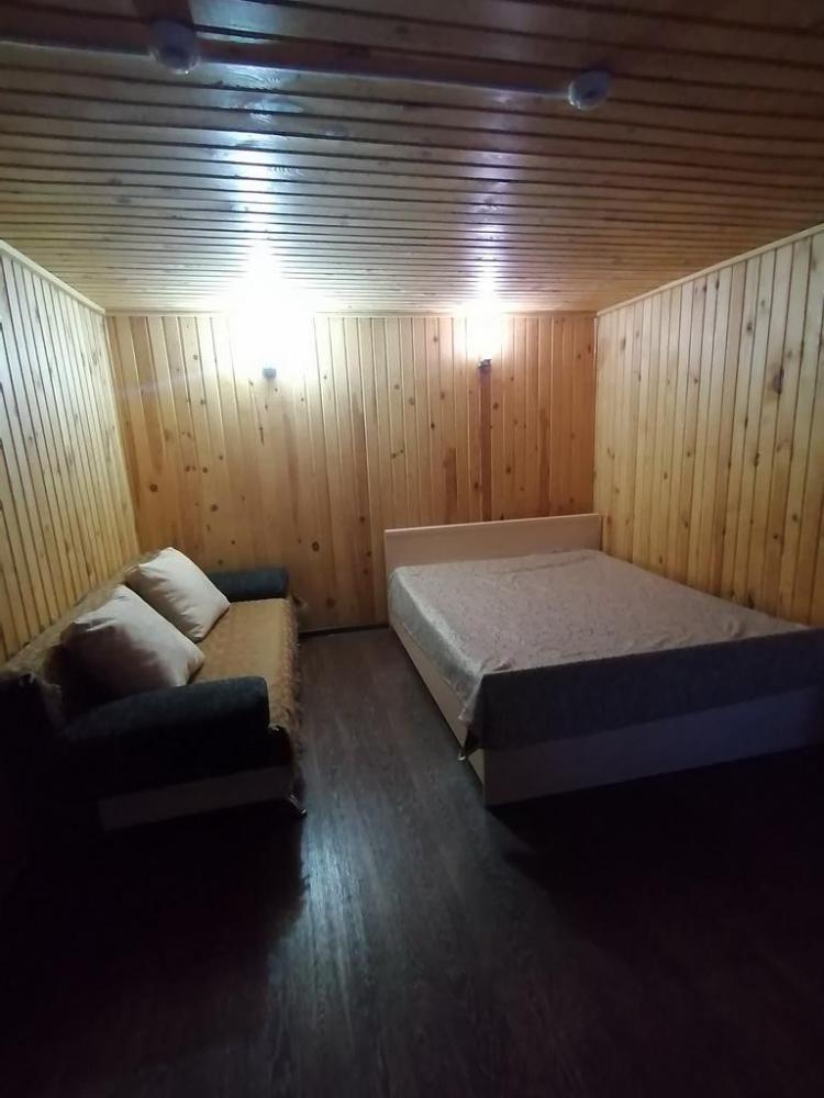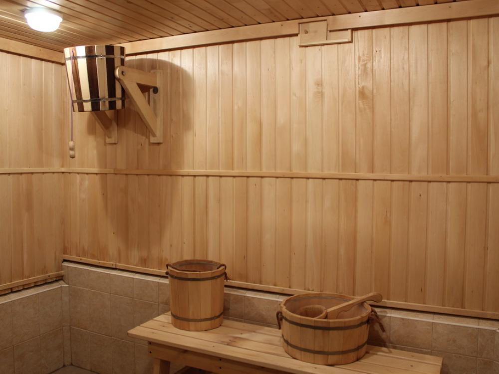На первом этаже располагается баня с просторной комнатой отдыха, парилкой, помывочным отделением, обливным ведром. Оснащена аудиосистемой. Деревянная мебель, кухонная зона с электроплиткой, холодильником, СВЧ, электрочайником и необходимым набором посуды. Санузел. На втором этаже две раздельные спальни с мебелью. Прилегающий участок огорожен заборчиком, имеется мангальная зона.