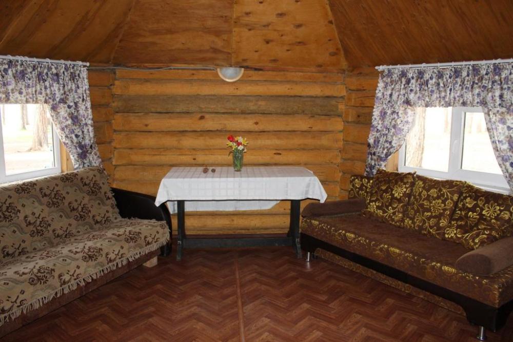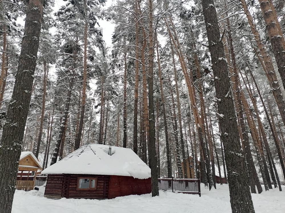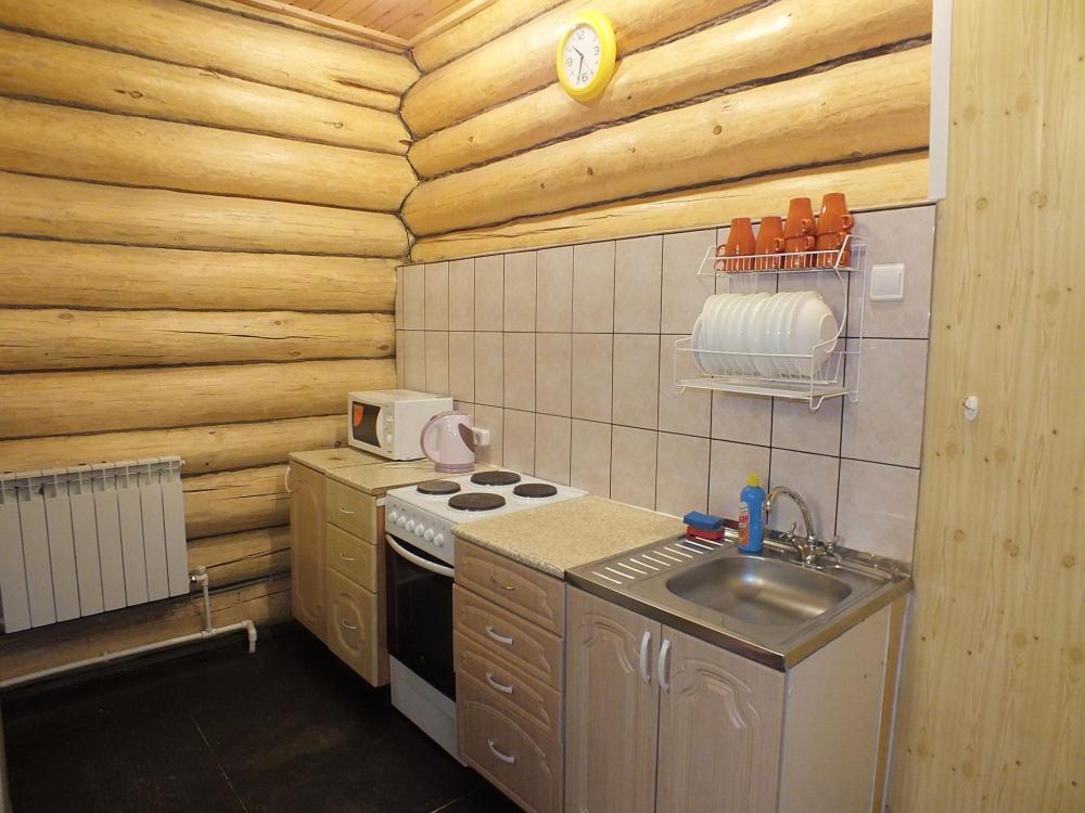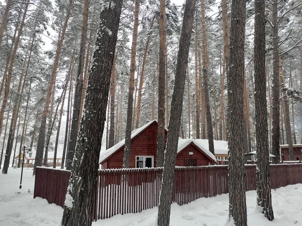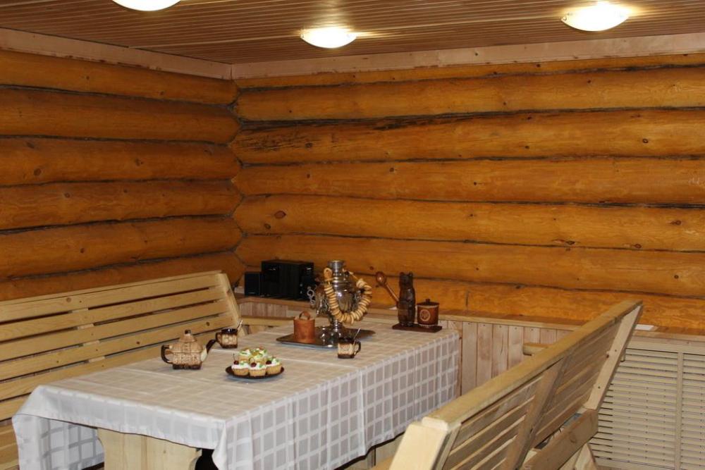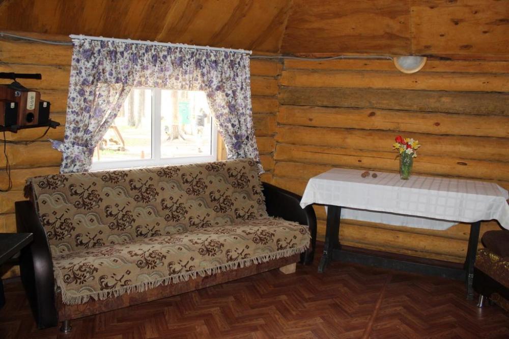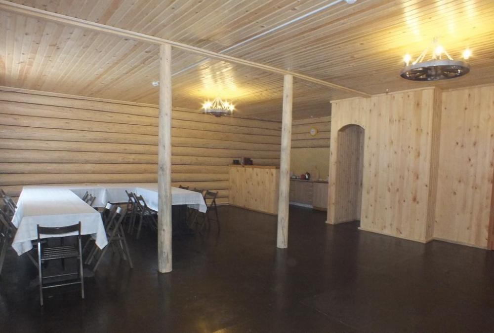 Дом состоит из двух комнат (гостиная и прихожая, объединенная с кухней), оборудован аудиосистемой, туалет и душевая кабина, имеется СВЧ-печь, электрочайник, электроплита, холодильник.Имеется печь, что позволяет даже в мороз поддерживать комфортную температуру. Беседка на 15 мест с мангальной зоной